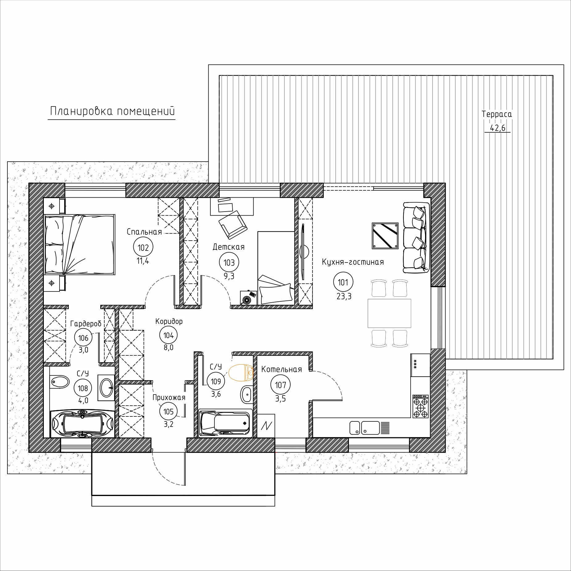 Общая площадь 86 м2