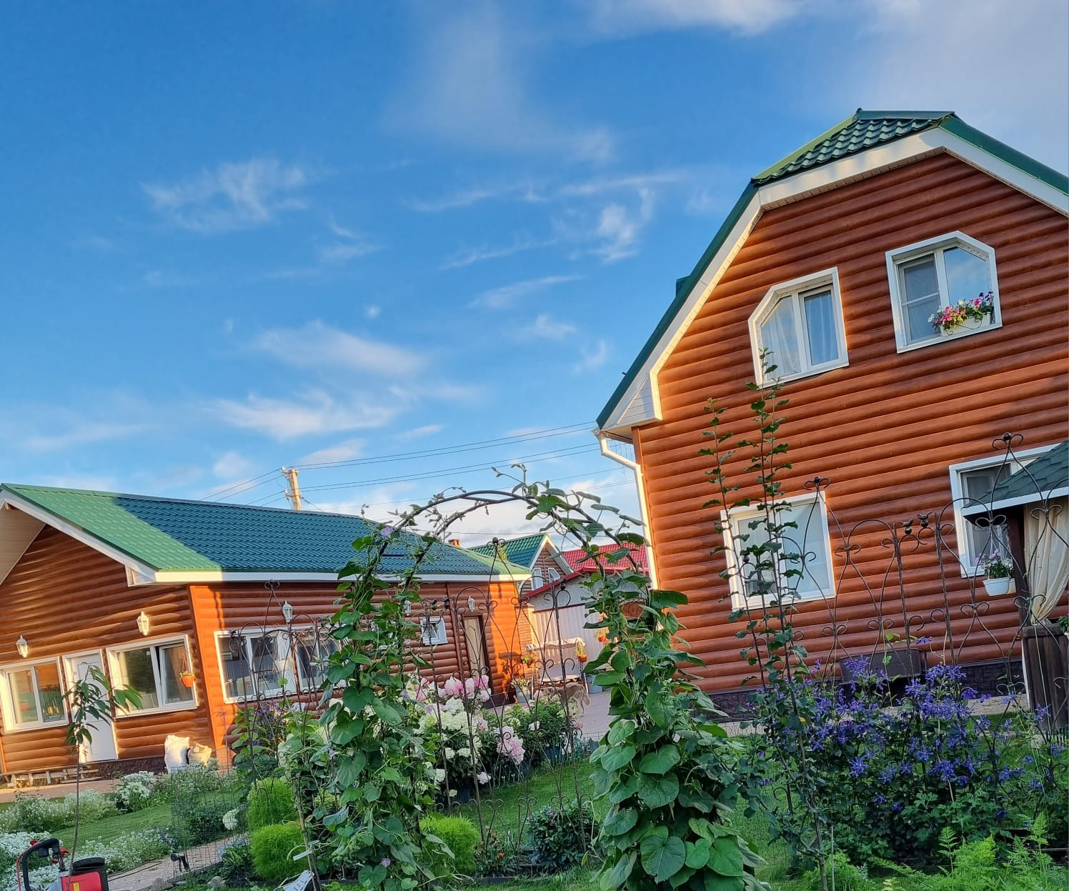 На участке два дома из качественного бруса: основной и гостевой.