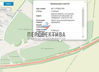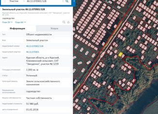 Продам земельный участок в снт звездочка, площадью 2071 кв.м. Кадастровый номер 46:11:070902:619 |