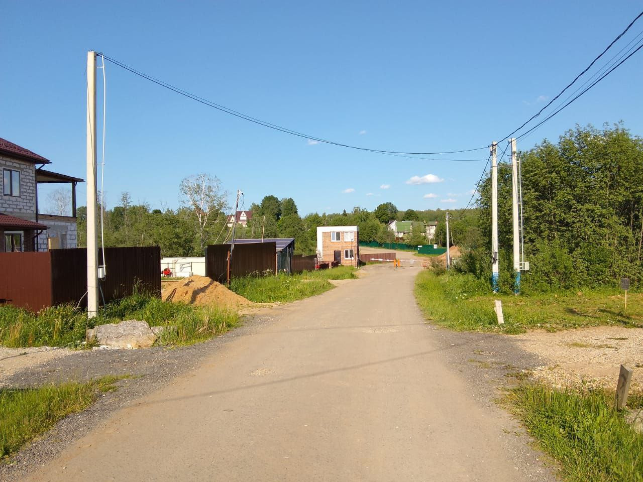 Въезд в поселок через КПП со шлагбаумом, дорога асфальтирована, зимой чистят