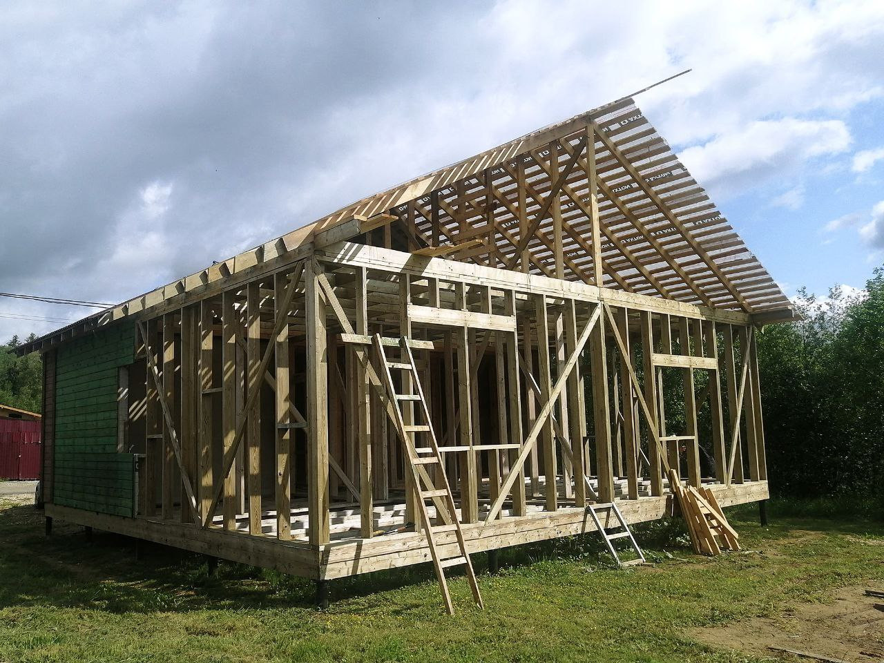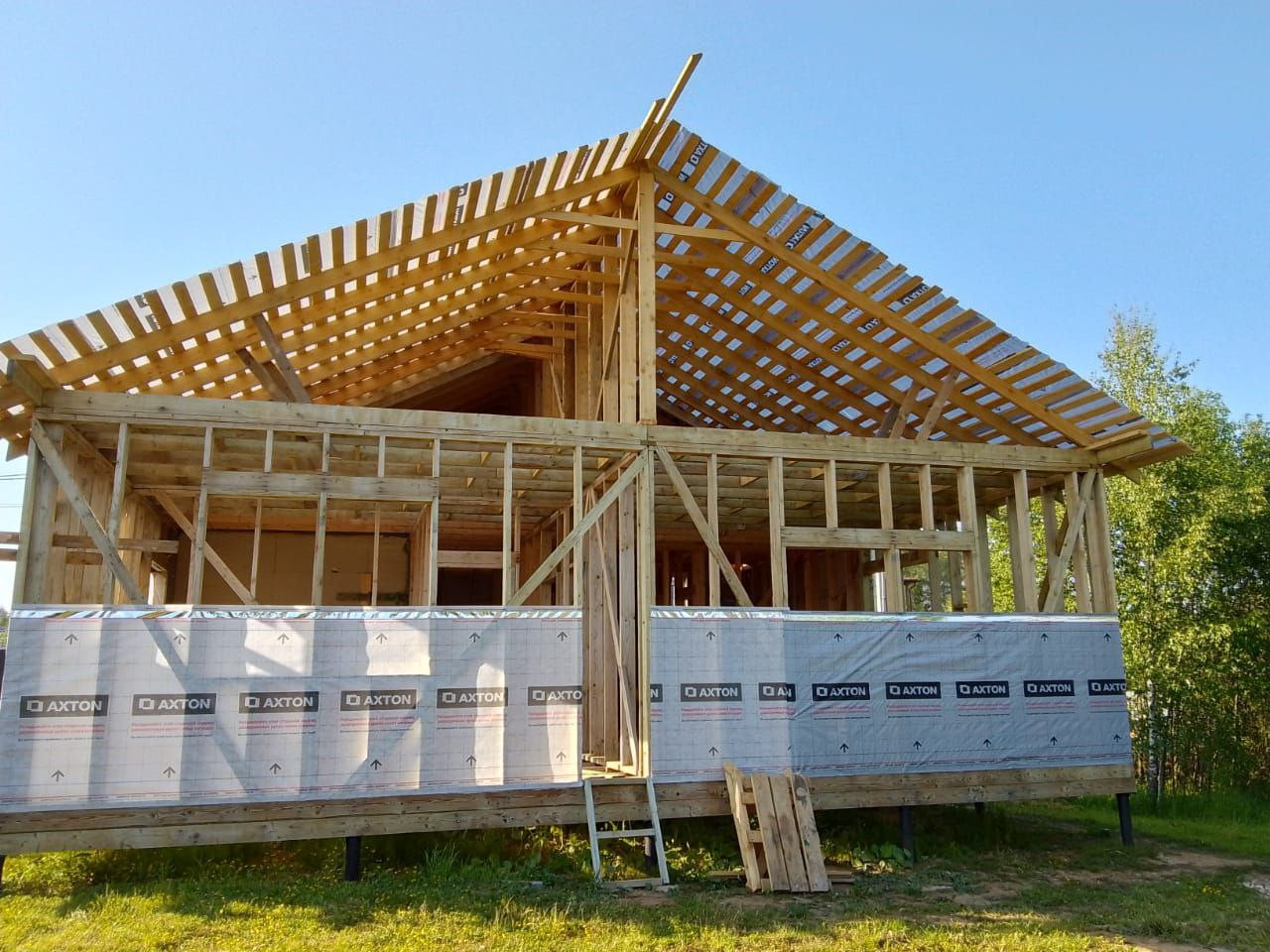 на участке КАРКАСНЫЙ ДОМ 100 м2 с 3 СПАЛЬНЯМИ