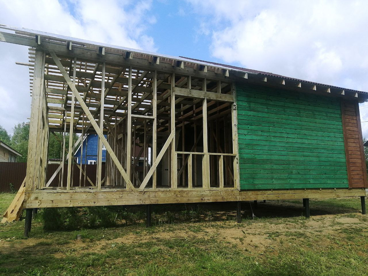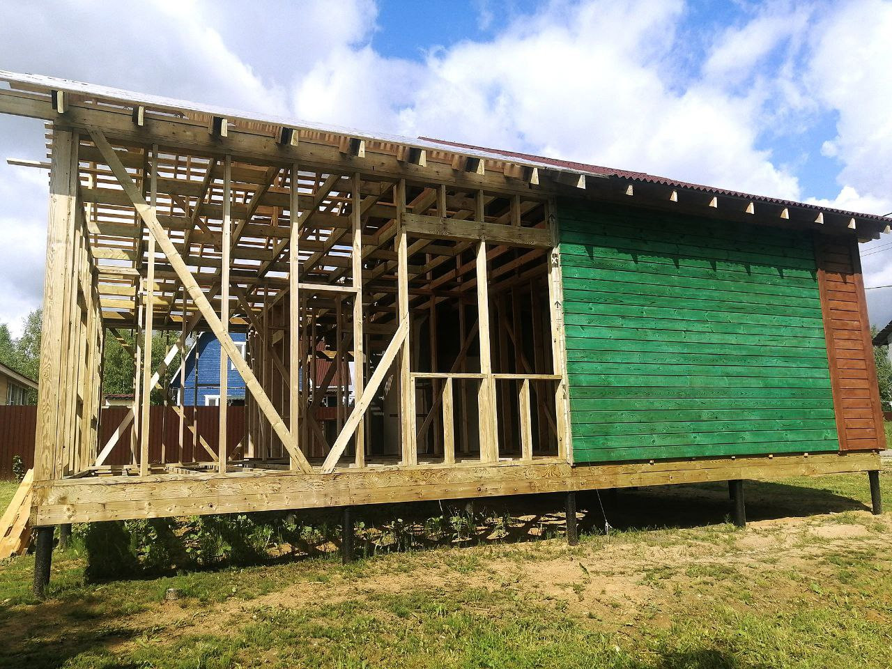 Весь каркас обработан КОЛЕРОВАННЫМ АНТИСЕПТИКОМ в несколько слоёв под покраску