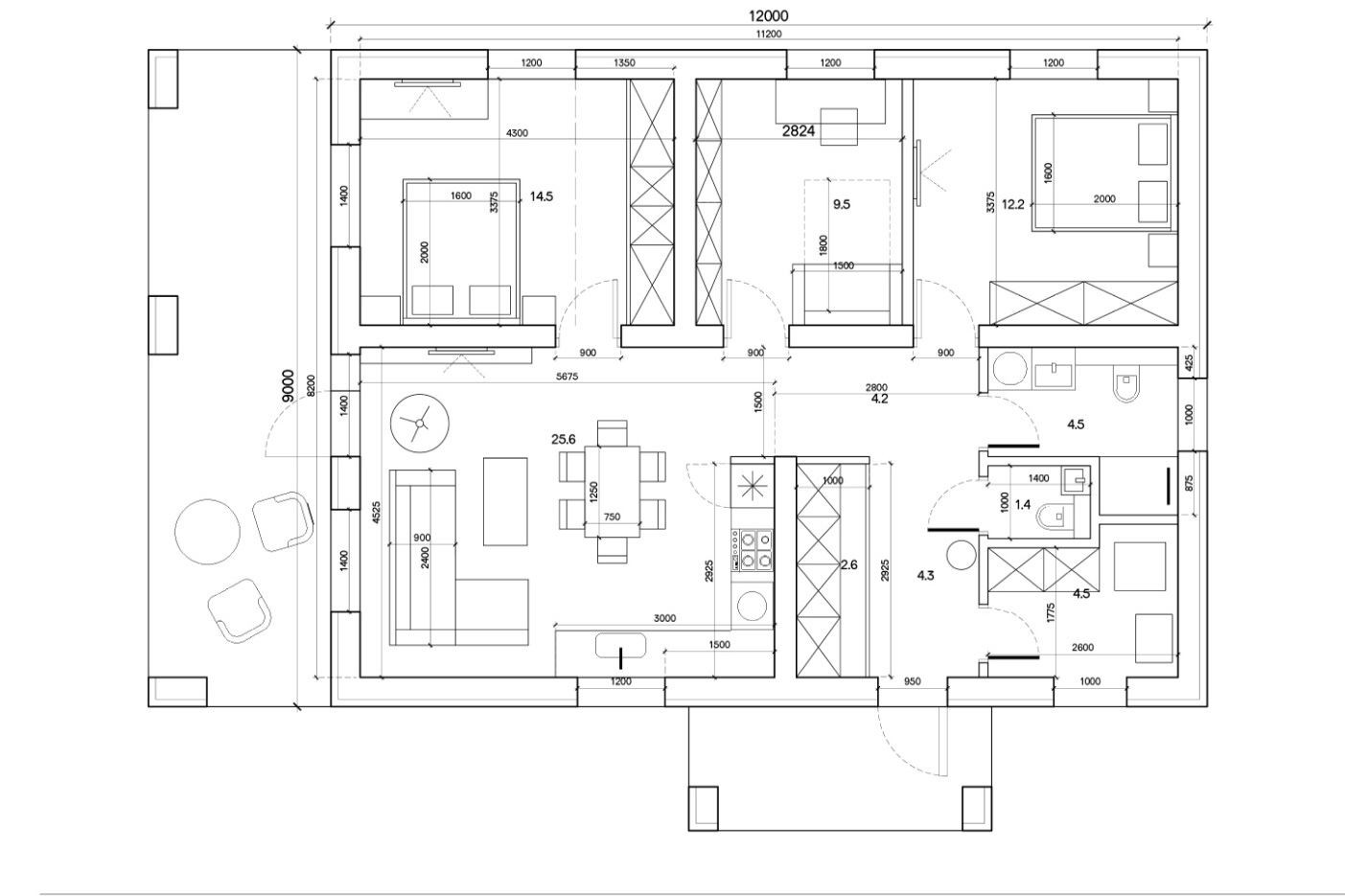 Просторная кухня-гостиная (24,6 м2) с выходом на открытую террасу (23,4м2) позволит вам проводить семейные торжества как на свежем воздухе, так и в стенах любимого дома. Три изолированные спальни (9.5 м2, 12.2 м2,14.5 м2) дадут возможность каждому члену семьи организовать комфортное только ему личное пространство, два санузла полностью исключат утренние очереди, а компактная бойлерная максимально сэкономит пространство для технических нужд дома.