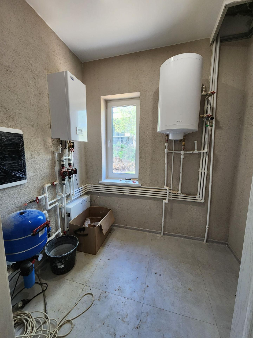 Первый этаж дома отапливается системой "тёплый пол". Котёл, бойлер косвенно нагрева, есть возможность установить удалённую автоматическую регулировку.