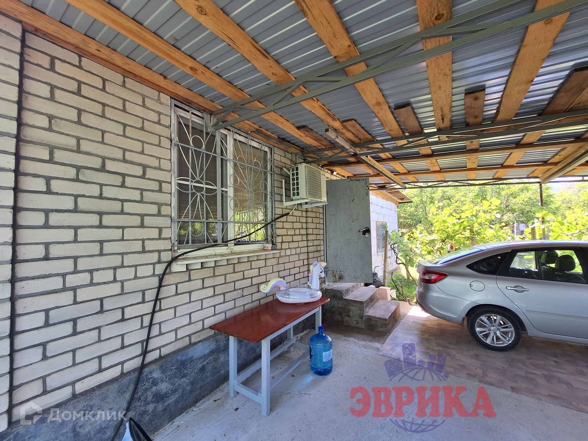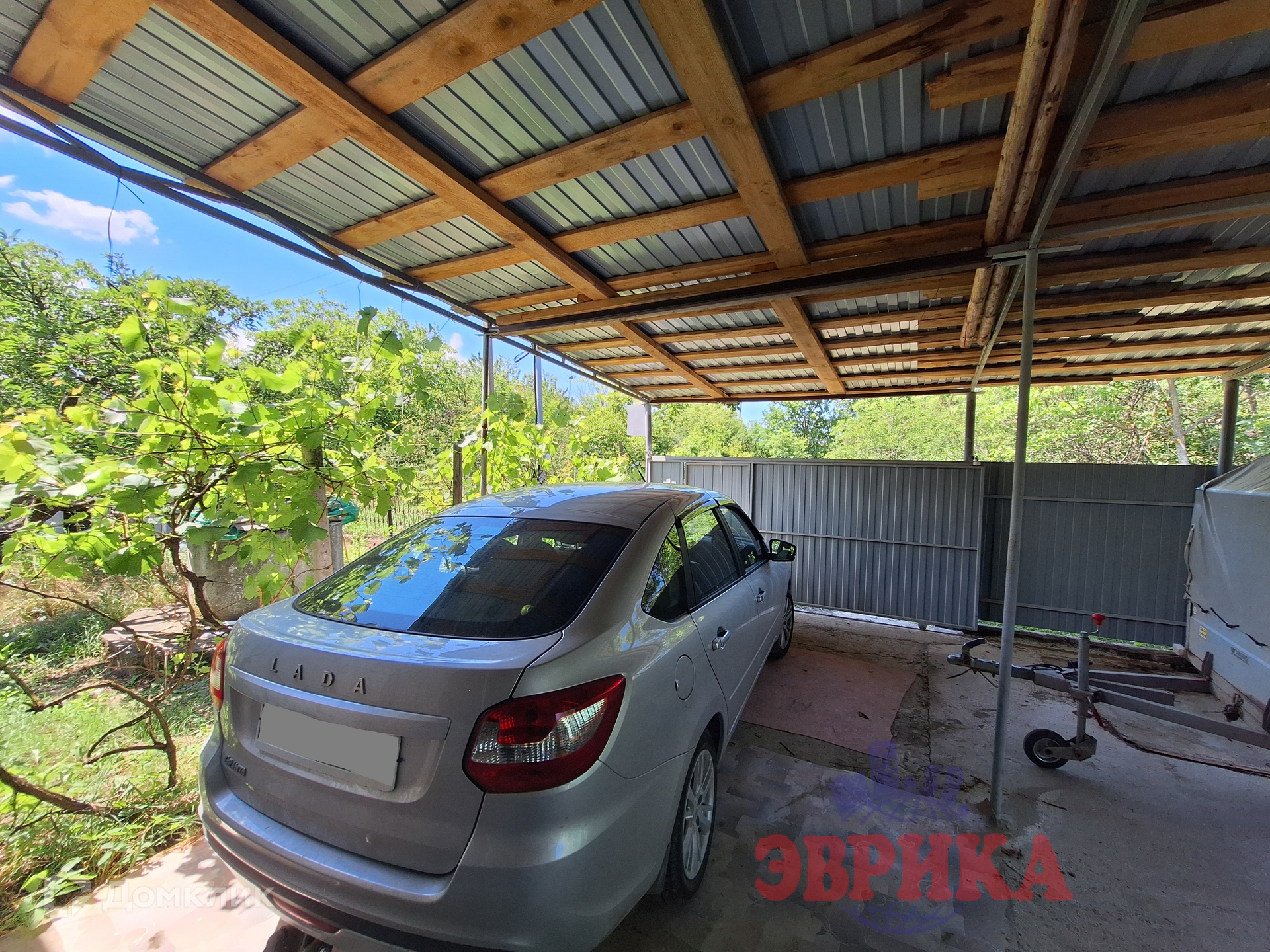 Двор забетонирован, укрыт навесом.