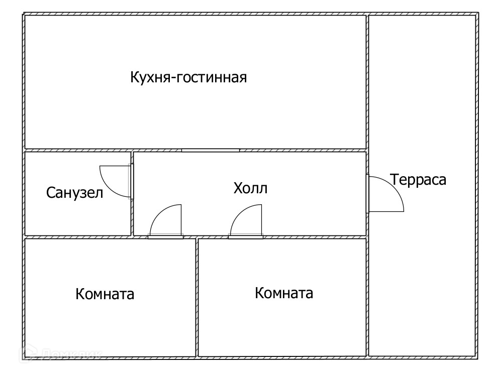 Терраса, просторная прихожая, отдельная кухня-гостиная две спальные комнаты, санузел.