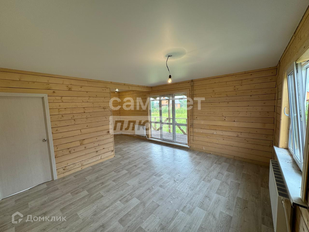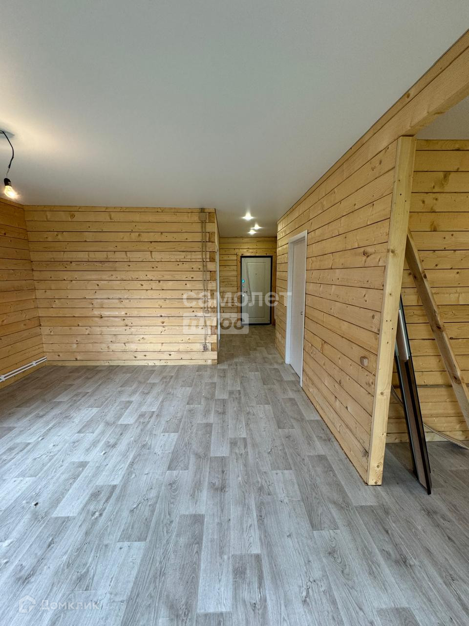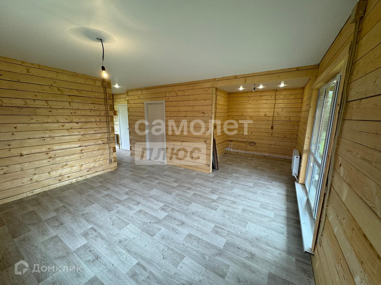 Отделка: на полу застелен линолеум, потолок натяжной, стены брус, установлены межкомнатные двери.