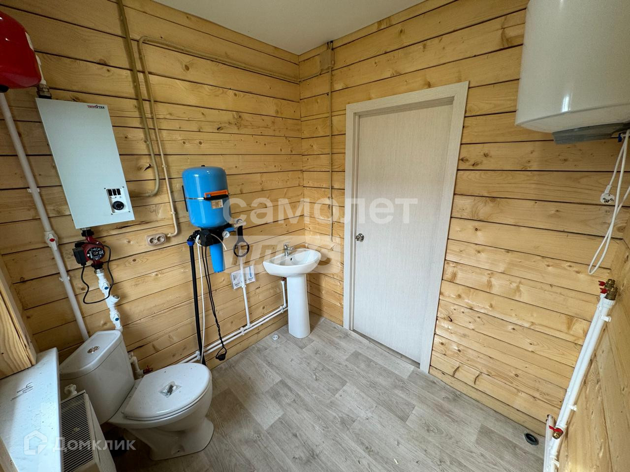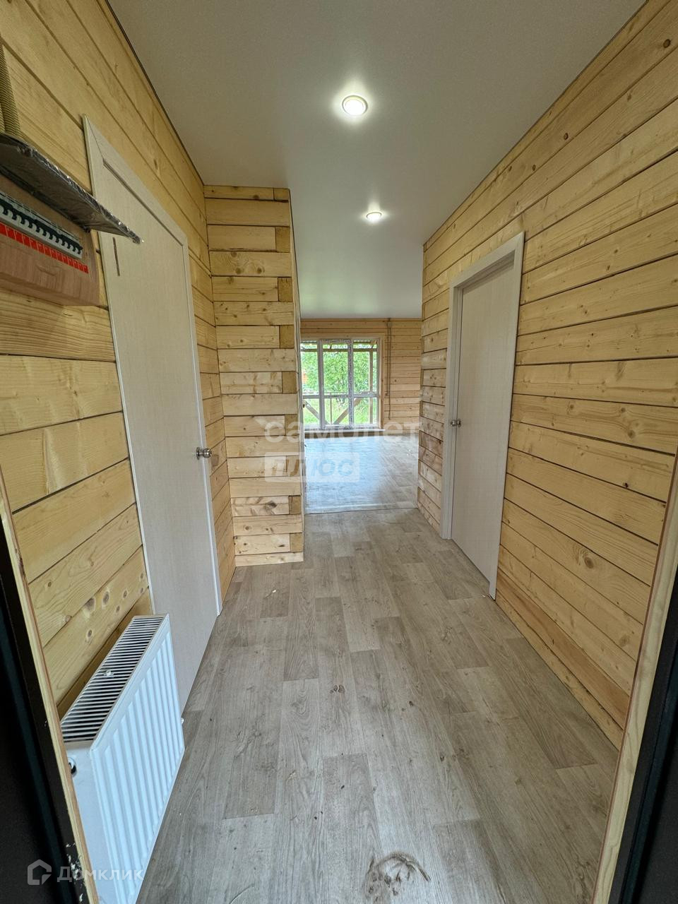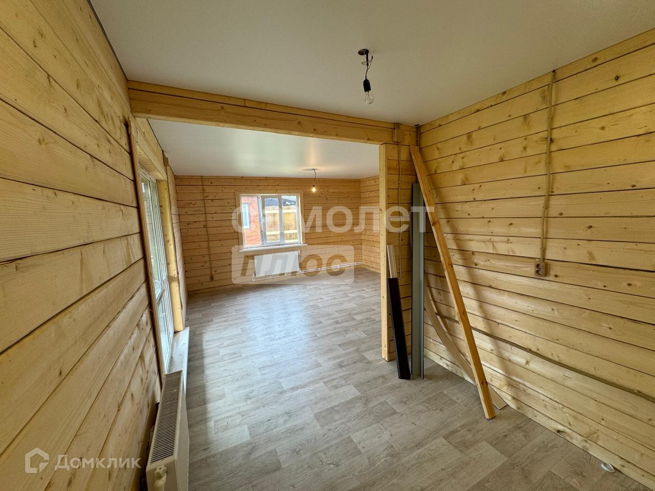 Отделка: на полу застелен линолеум, потолок натяжной, стены брус, установлены межкомнатные двери.