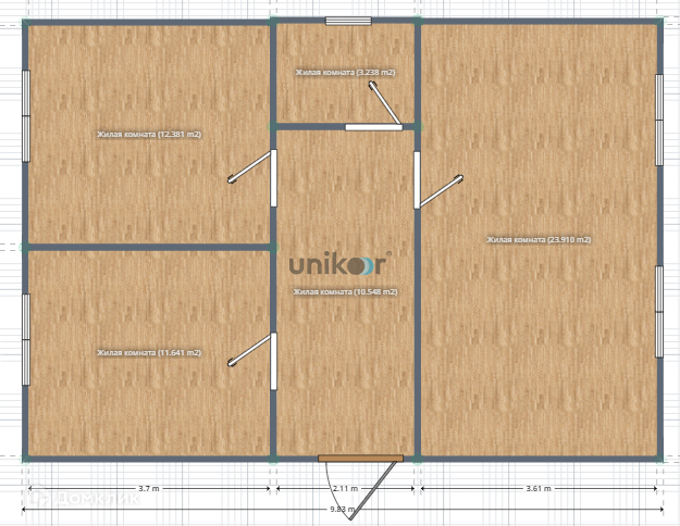 Большие окна: Обеспечивают максимальное количество света и прекрасный вид на природу.