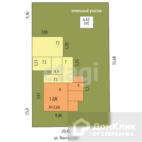 Площадь участка 6.4 сот.