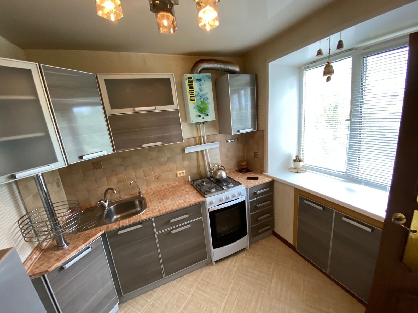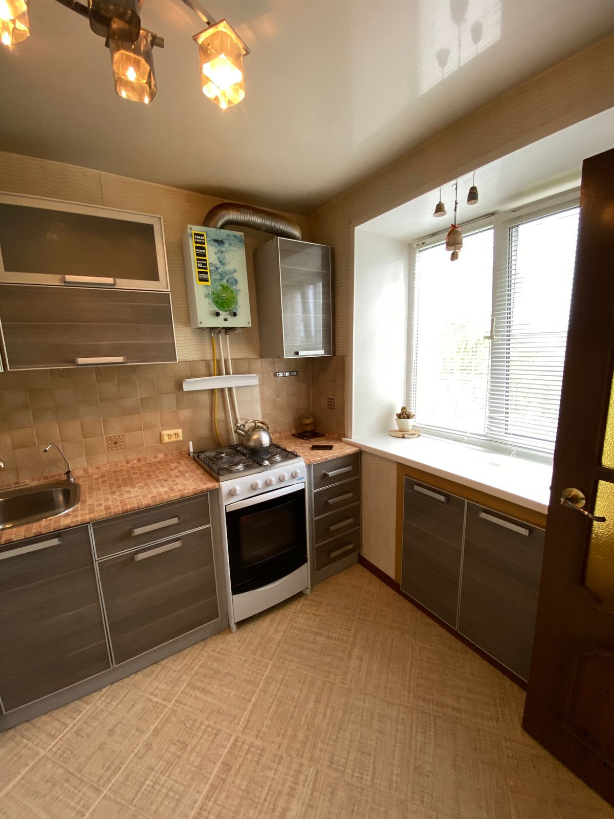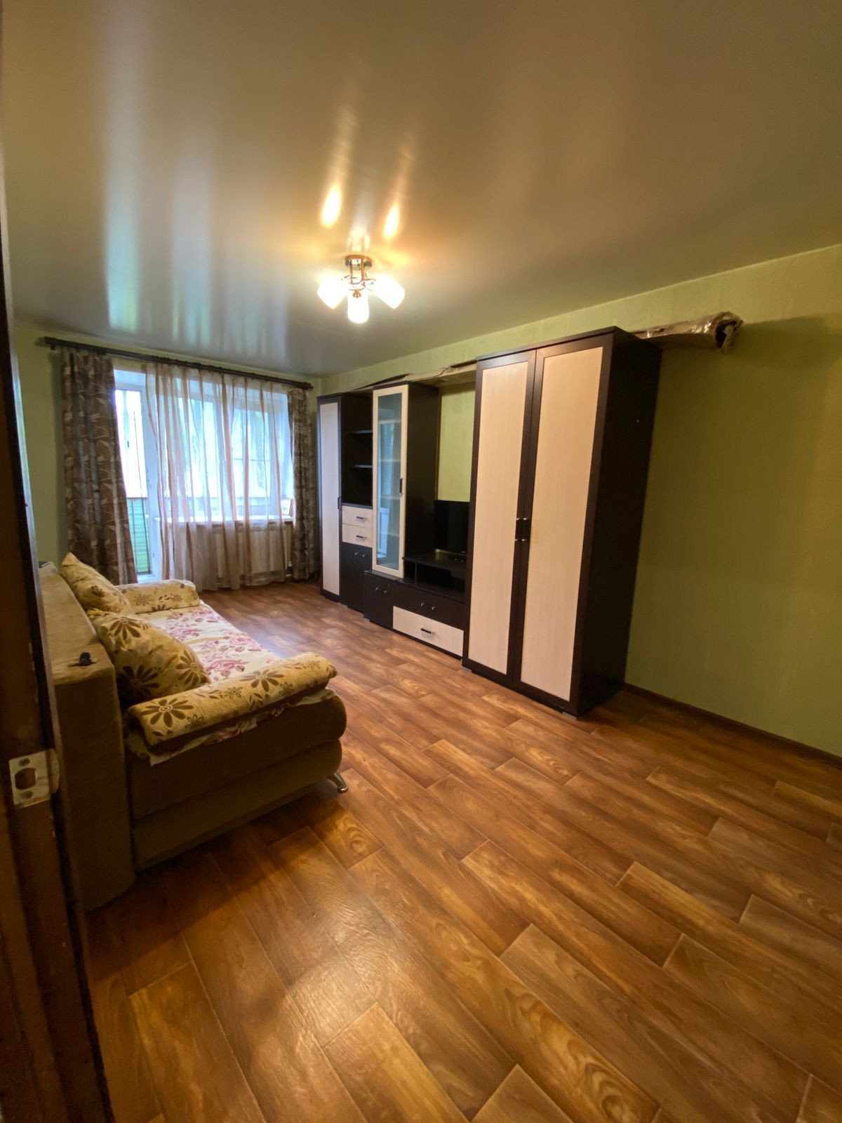 В квартире: металлическая входная дверь, современная электропроводка, напольное покрытие кухни кафельная плитка (деревянные полы демонтированы по всей квартире),натяжные потолки в комнате и кухне, пластиковые окна, остеклен балкон. В 2021 году произведен капитальный ремонт крыши.