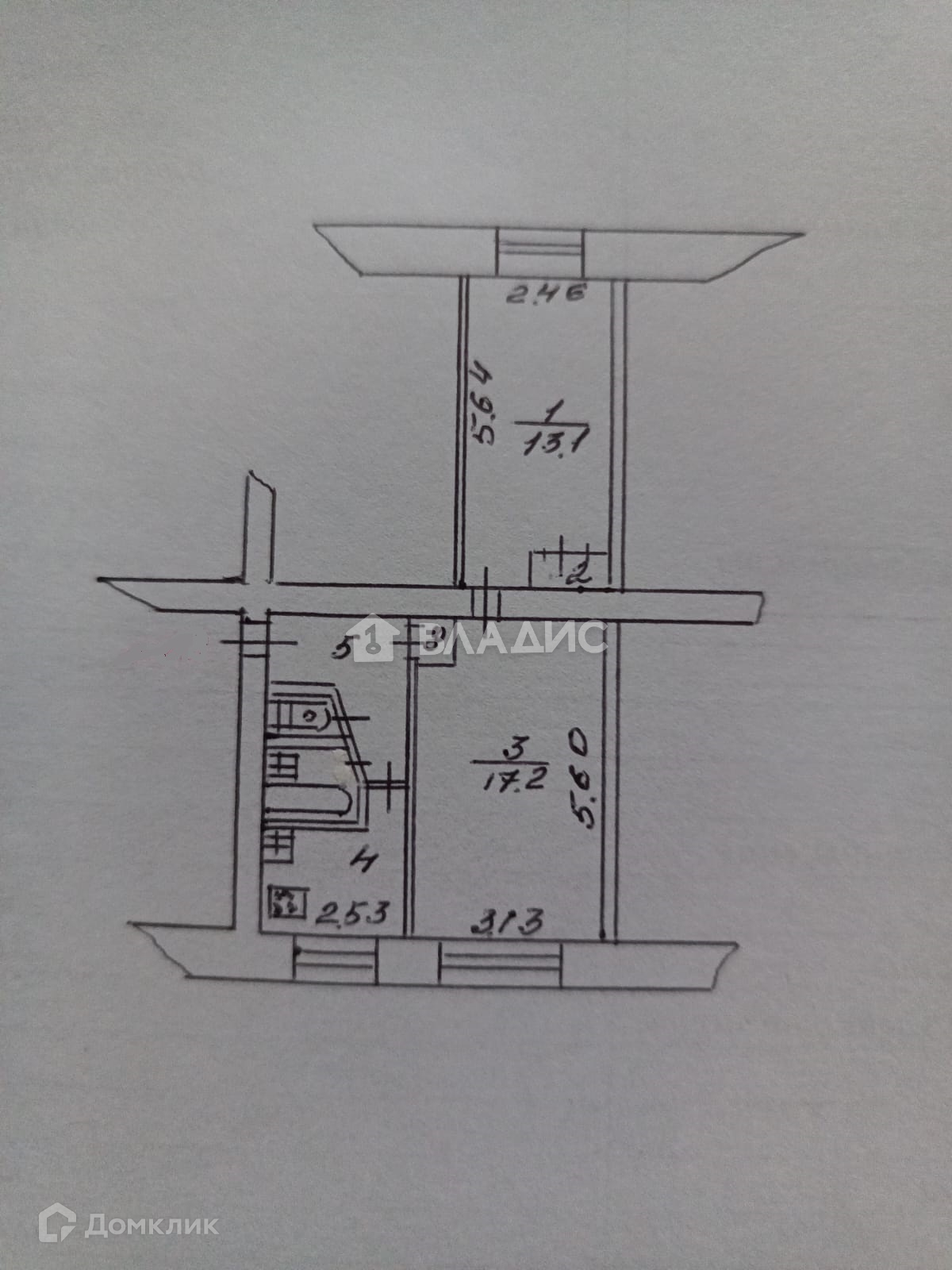 Жилая площадь 30.3 м2