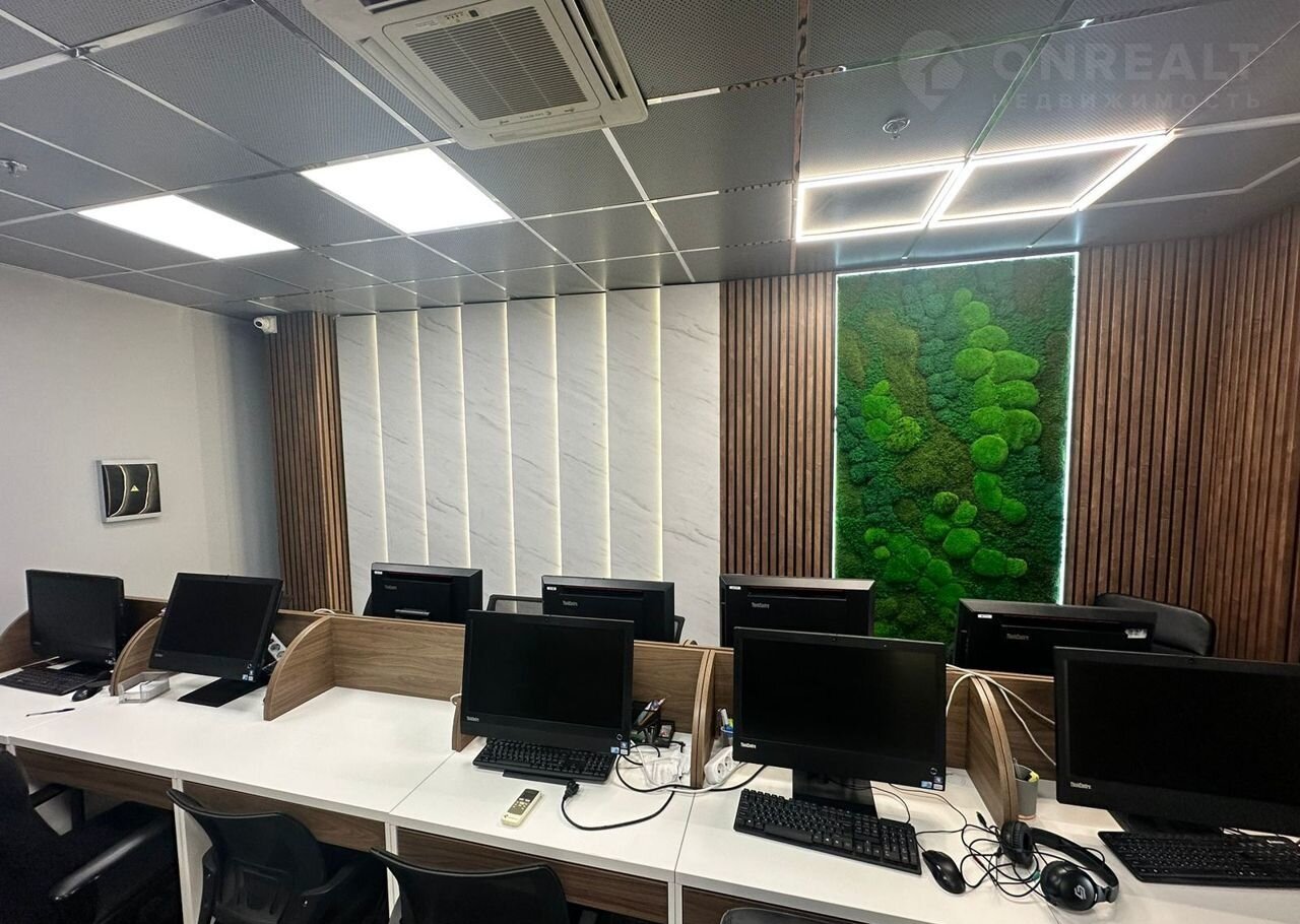 Выполнен один из лучших ремонтов, относительно других сдаваемых офисных помещений. Стены декорированы деревом, натуральным мхом. Установлена LЕD подсветка. Пол отделан качественным и дорогим ковролином. Ремонт обошелся в свое время в 1 млн. ₽. Атмосфера очень уютная! В офис, как говорится, «вкладывали душу». Панорамные окна « в пол» создают ощущение современности и комфорта.