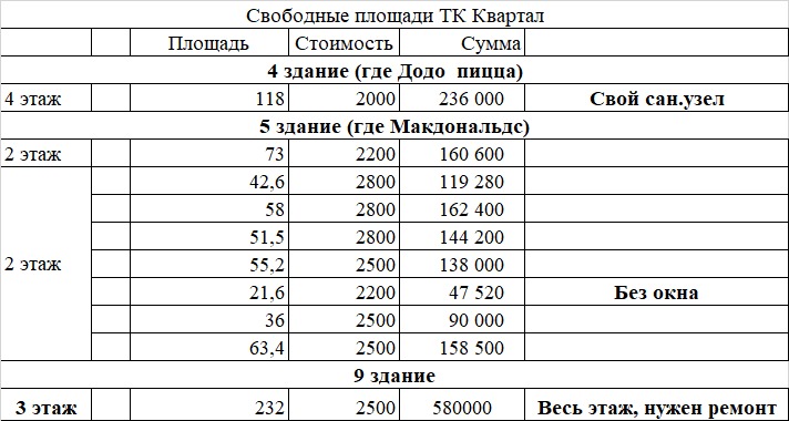 Есть другие площади.