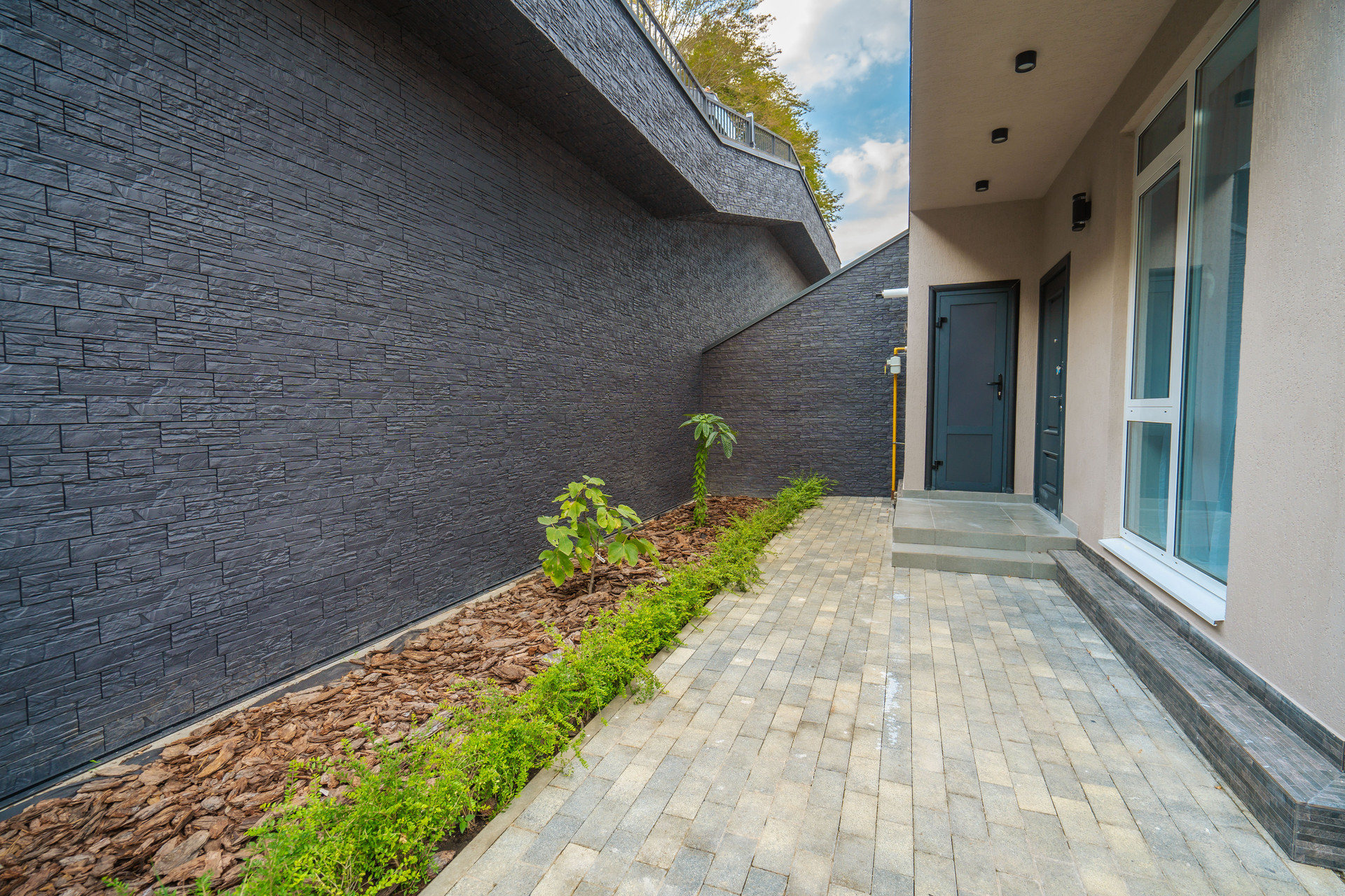На собственной территории предусмотрено парковочное место на 1 авто и зона отдыха с мангалом.