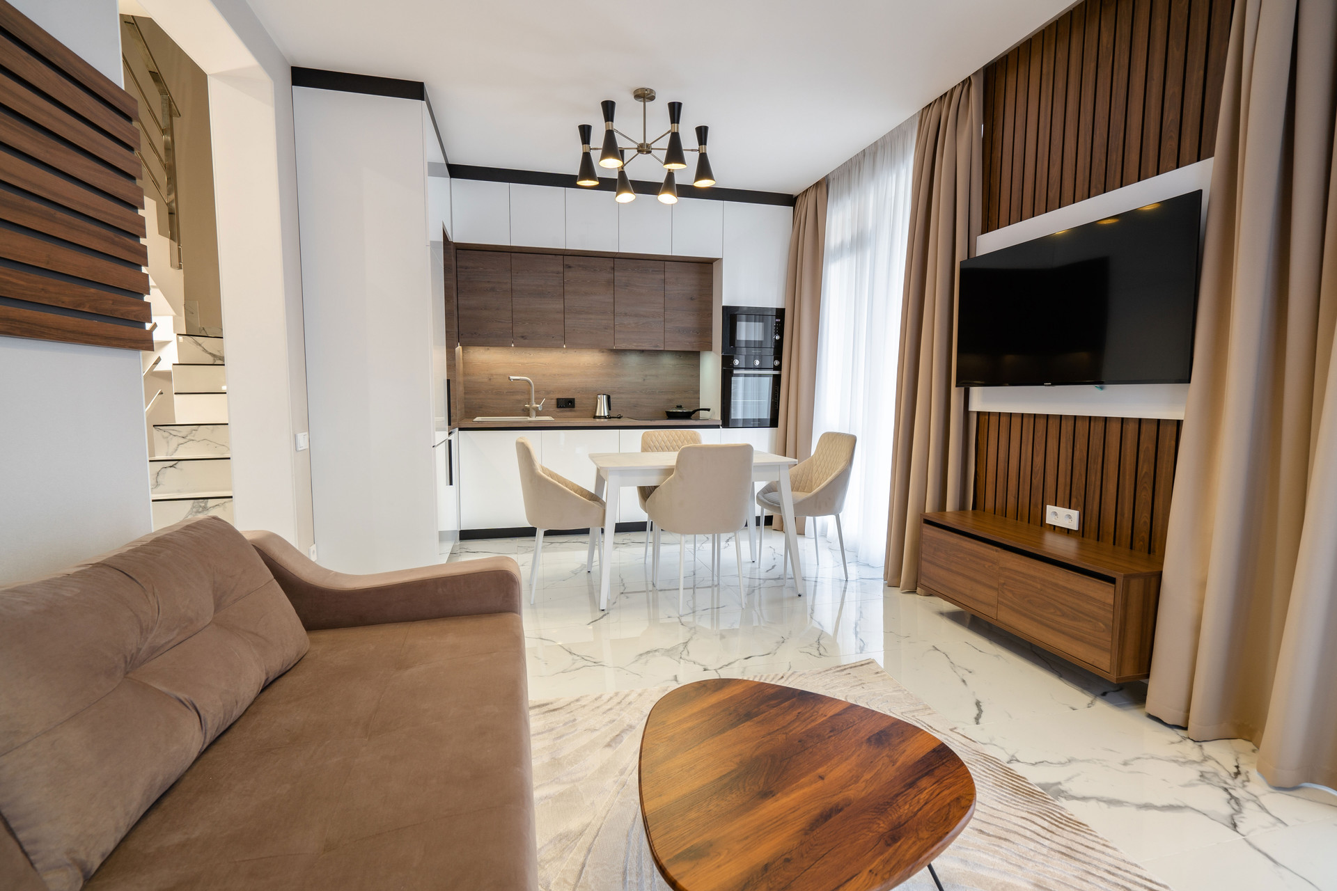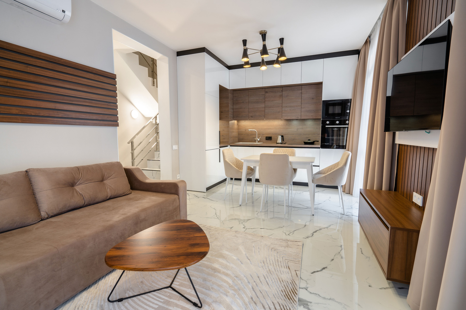 Двухэтажный ТаунХаус с универсальным и удобным планировочным решением, выходом на эксплуатируемую кровлю и облагороженной придомовой территорией, оснащен всем необходимым для комфортного проживания и отдыха.