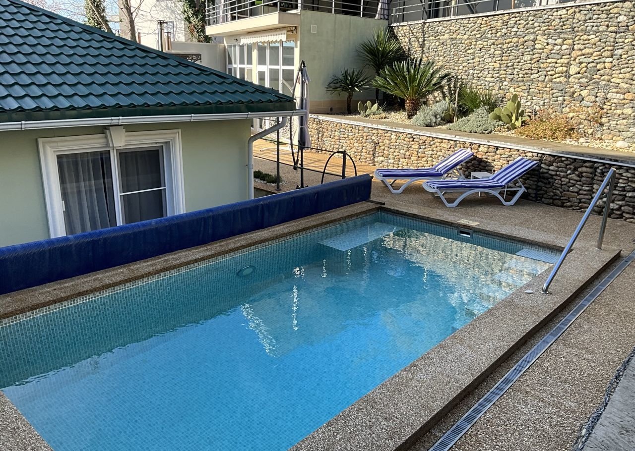 На участке есть баня с комнатой отдыха, купелью и с/у, а так же зона барбекю с мангалом, тандыром и казаном. Подогреваемый бассейн 6х3м полностью автоматический с противотоком. приватная зона для загара, детская площадка, сад из множества плодовых деревьев и кустарников, парковочные места на 6-7 машин.