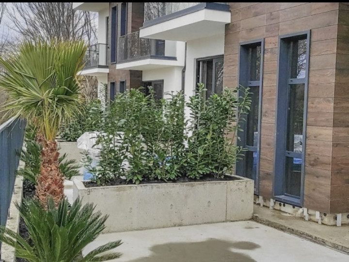 Вентилируемых фасад, отделка-итальянский керамогранит с фактурой дерева и декоративная мелкодисперсная штукатурка. Высота потолков 3,20м.