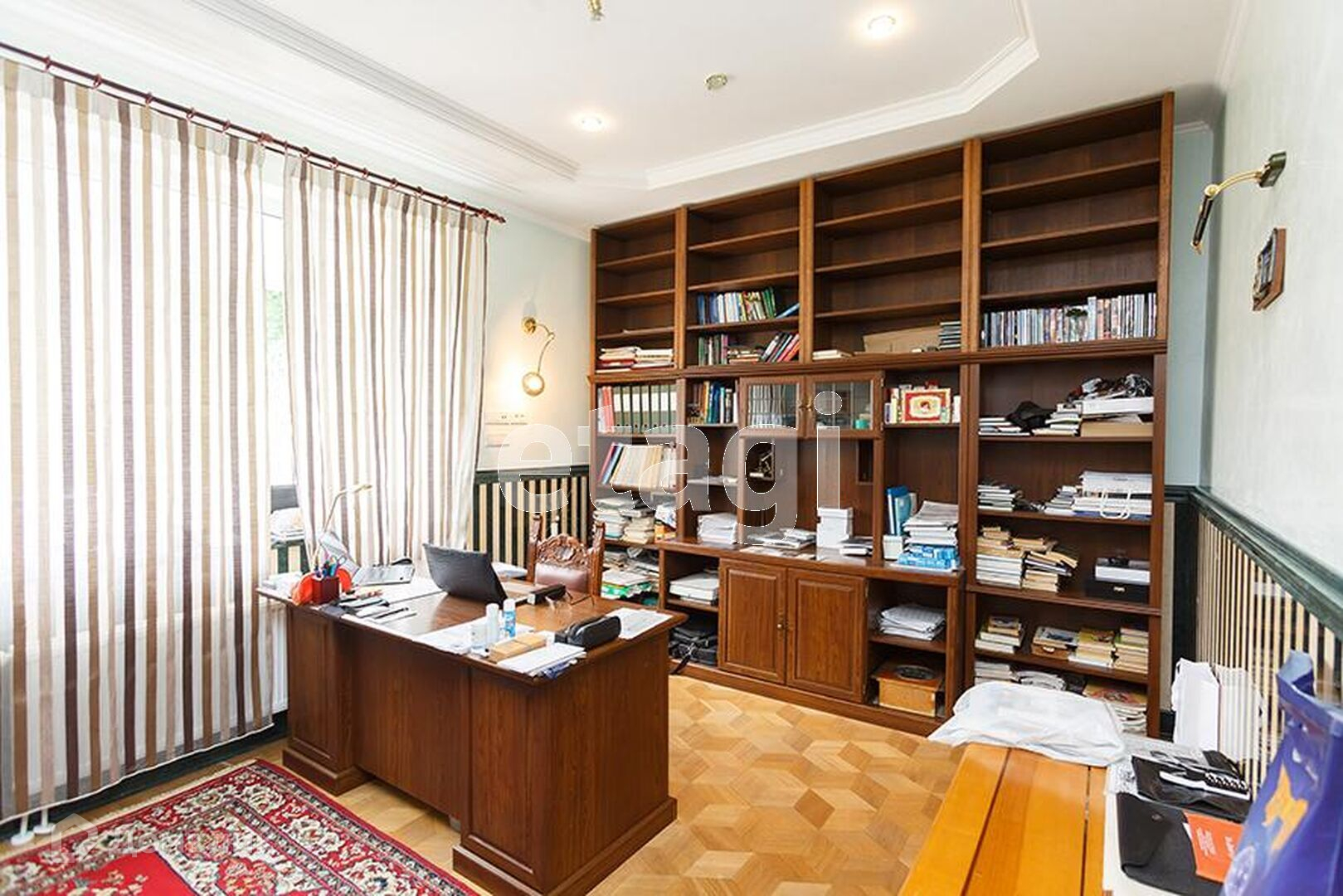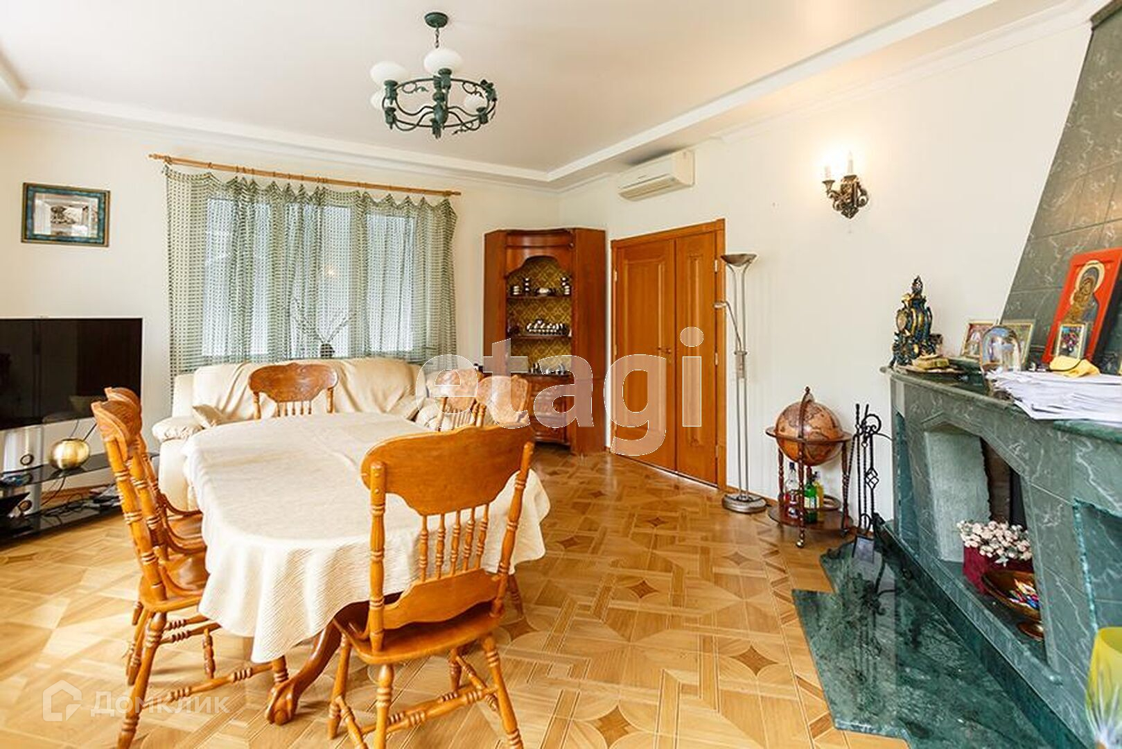 Во всем доме натуральный дубовый паркет, а лестничные марши и холлы 0-го и 1-го этажа выполнены из натурального мрамора. Все наружные проемы дома защищены электрическими и механическими жалюзи, на окна цокольного этажа и санузлов установлены решетки, что обеспечивает дополнительную защиту. В цокольном этаже расположен гараж на две автомашины, котельная, спортивный зал, летняя кухня.3 этажа дома жилые со всеми удобствами. Отделка дома премиум класса выполнена из высококачественных материалов, санузлы выполнены из керамики производства Италии и Испании.
