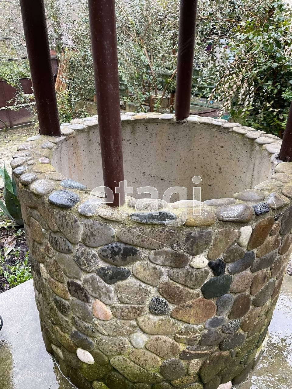Земельный участок: 14 соток, пять из них идеальной прямоугольной формы, остальные - декоративный сад в горку. Соседи только с одной стороны. Высажены плодовые деревья, есть беседка, декоративный колодец.