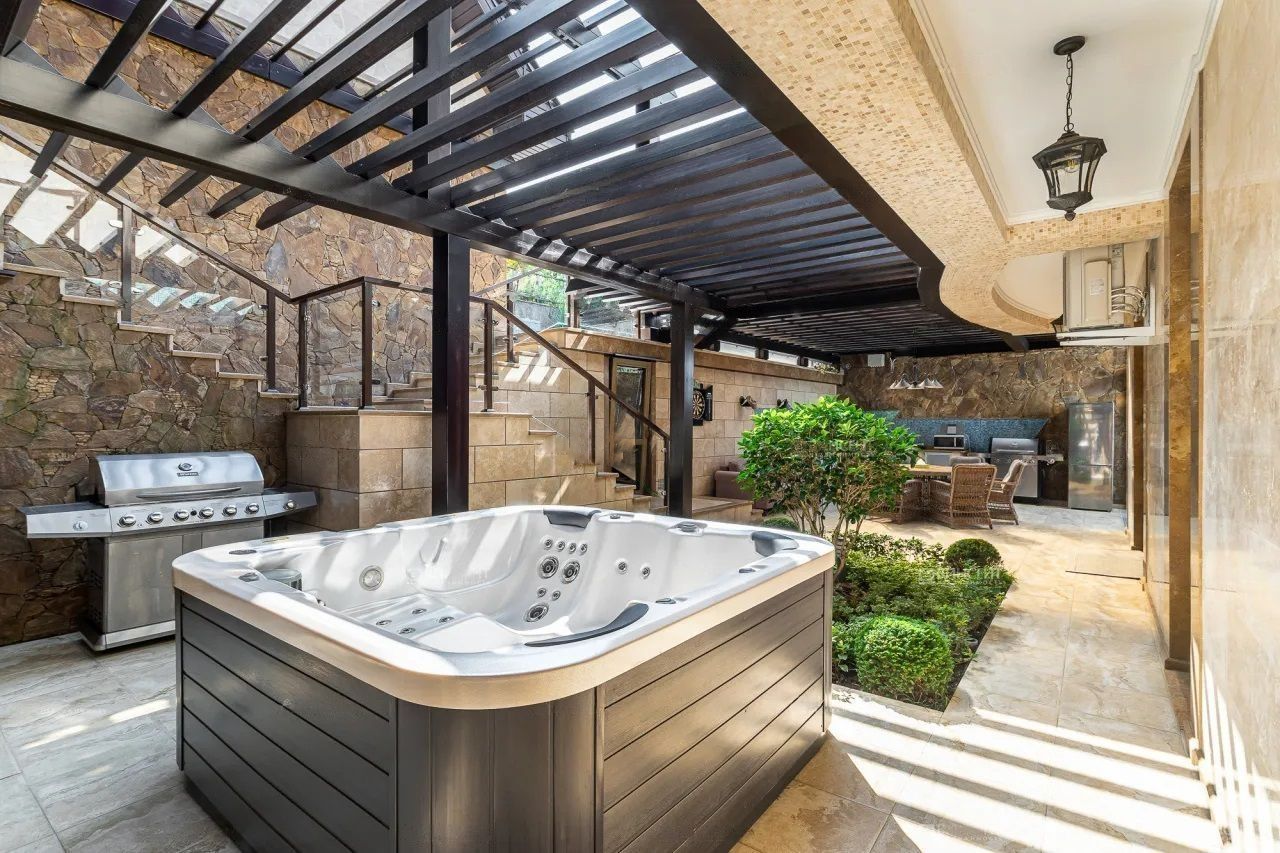Ландшафтный дизайн территории идеально дополняет архитектурную концепцию виллы. На участке есть собственный бассейн и патио с джакузи. Здесь вы сможете устраивать вечеринки для своих друзей или же SPA-вечера, наслаждаясь южным теплом и невероятными видами на Сочи!