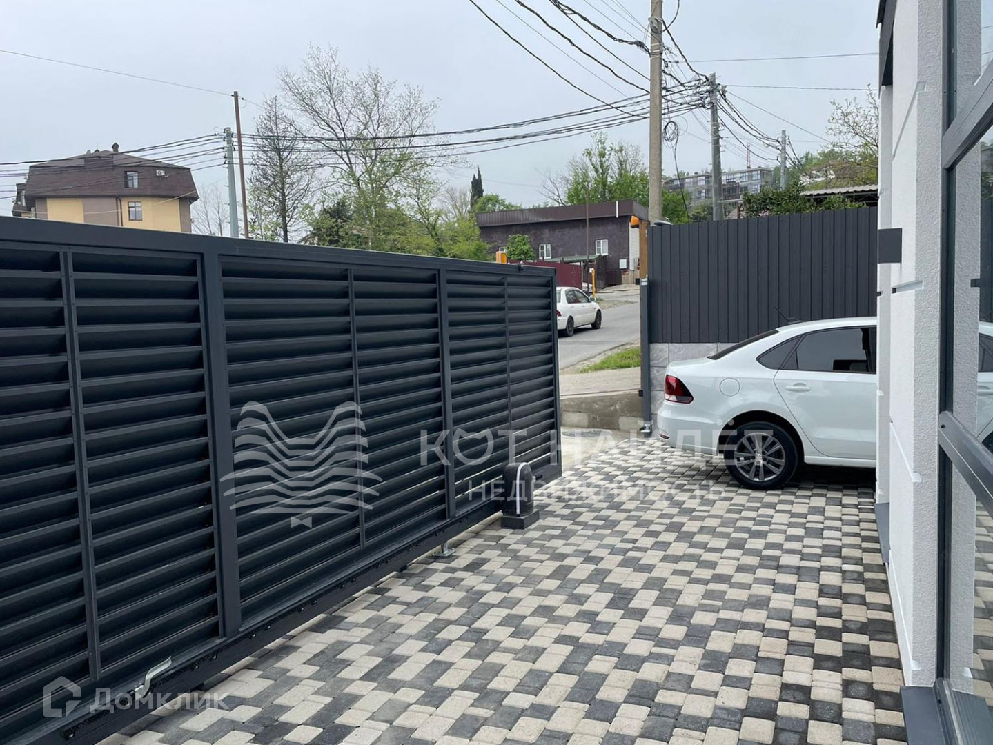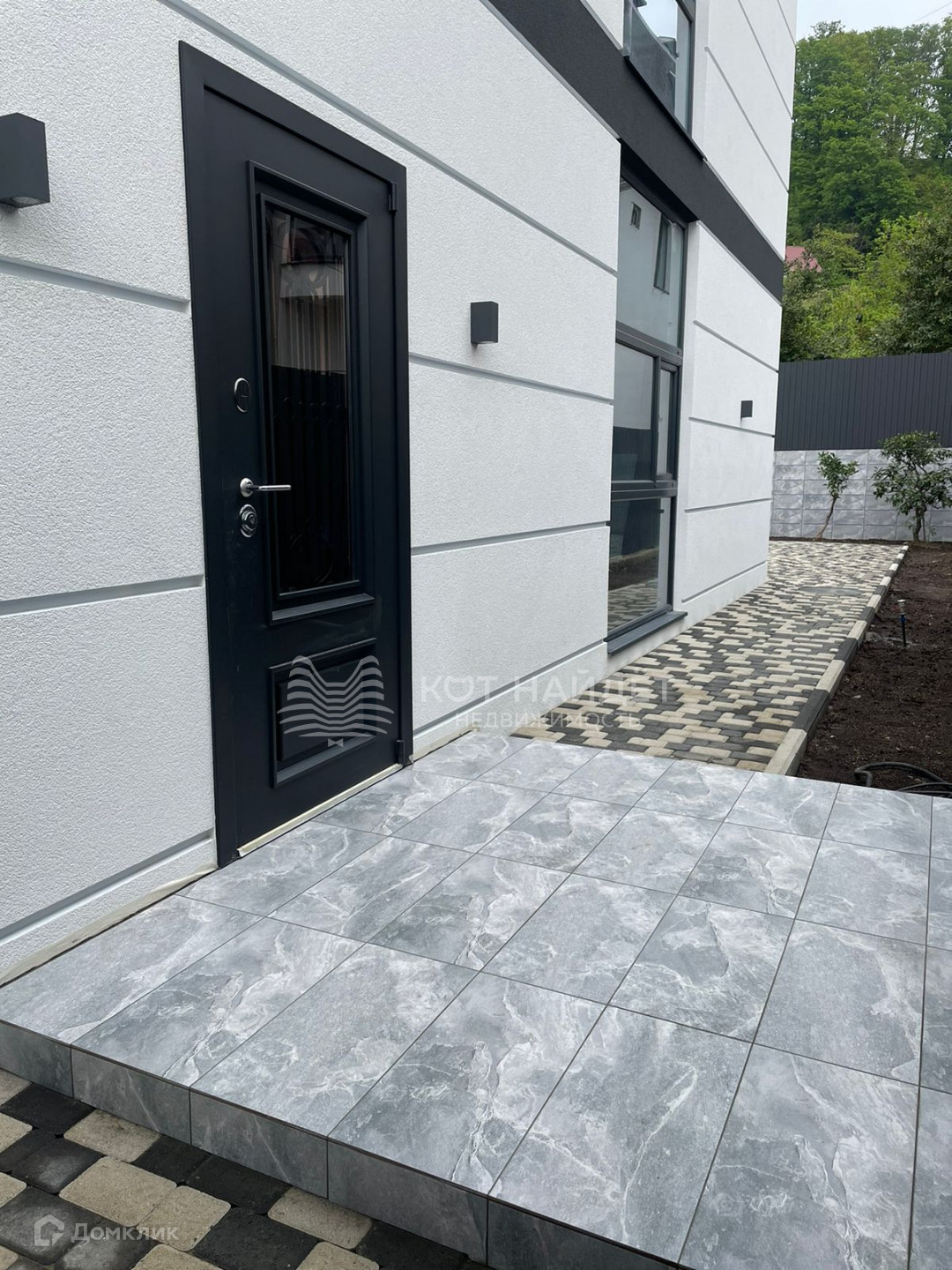 По территории дома выложена стильная брусчатка, а вдоль забота постелен газон, который вы можете облагородить цветами или деревьями, а некоторый плодовые деревья уже есть на участке. На территории дома есть место для парковки.