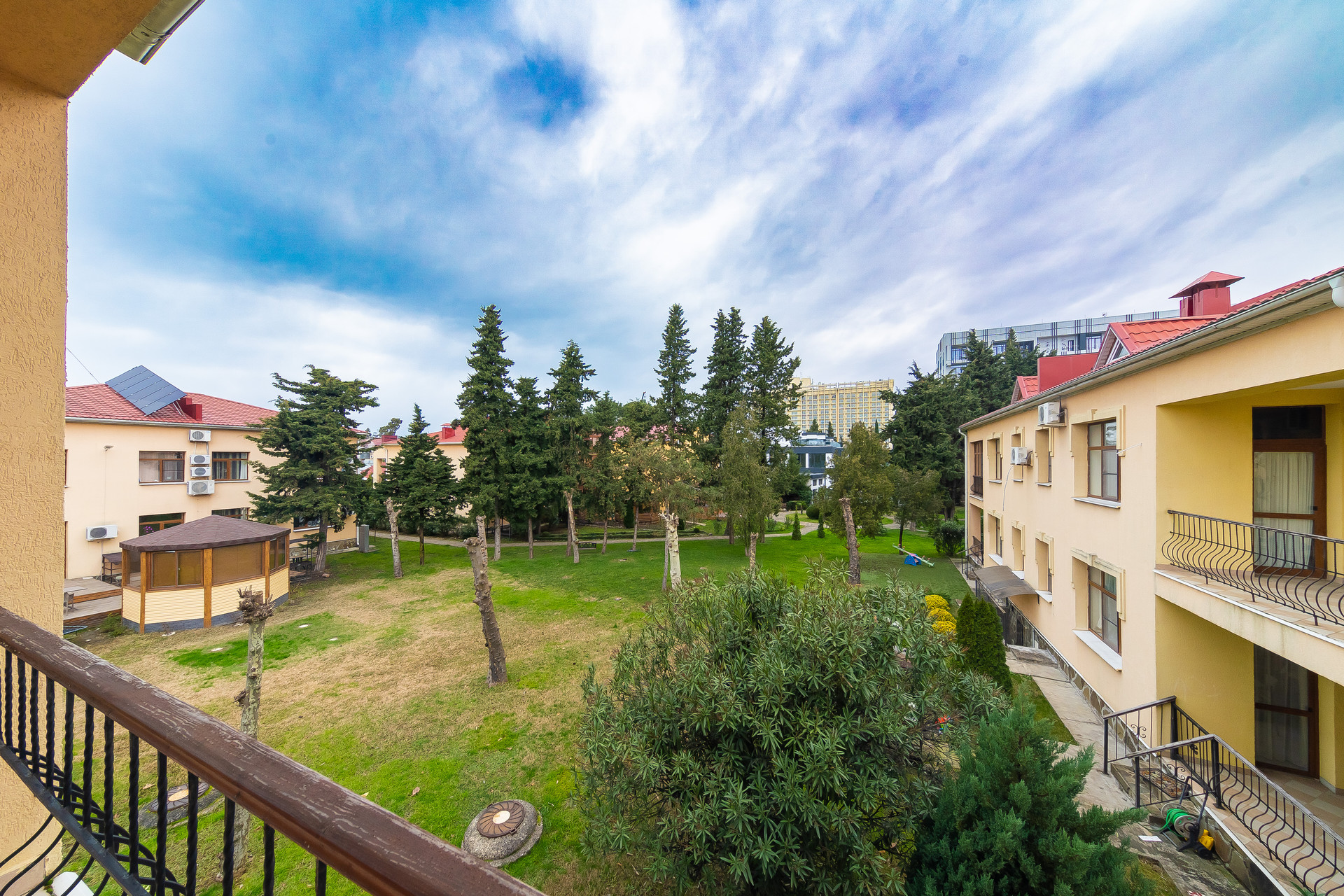 На закрытой территории комплекса имеется видеонаблюдение, служба охраны.