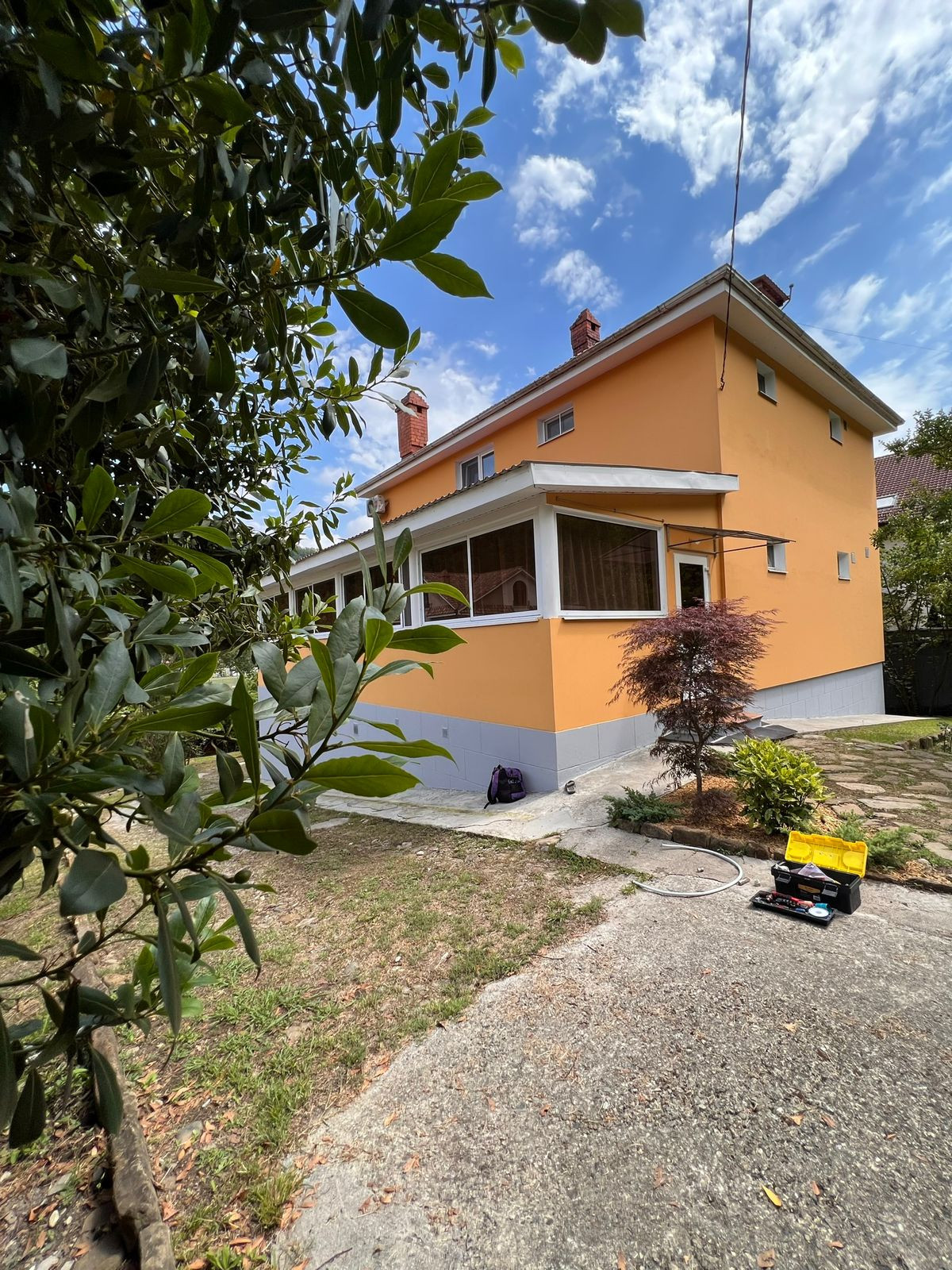 Гараж на 2 авто, отапливаемая веранда, кладовая. Две спальни, гостиная, кухня, прихожая.