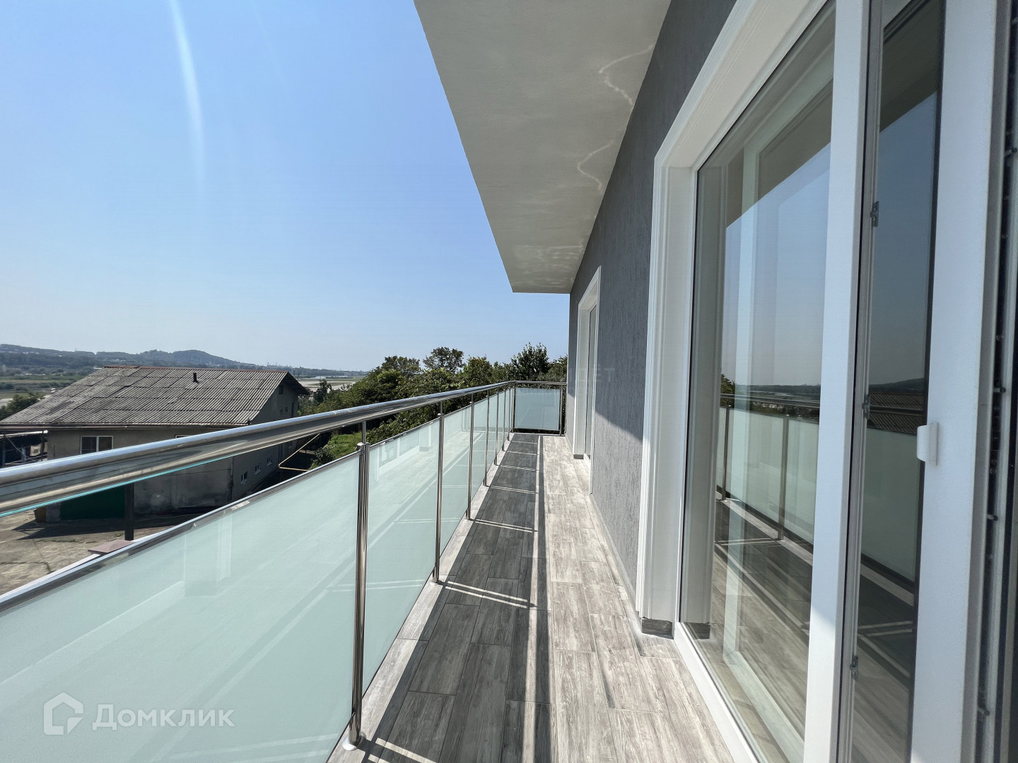 Коттедж 157 м², имеет два этажа и 4 выхода на балкон с витражным остеклением.