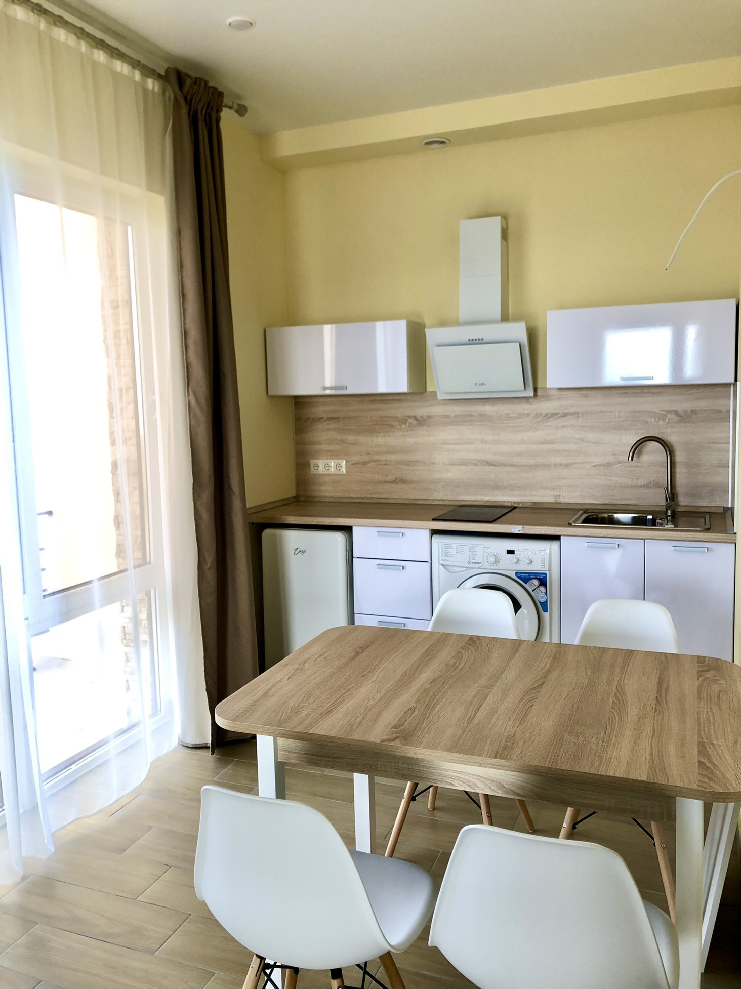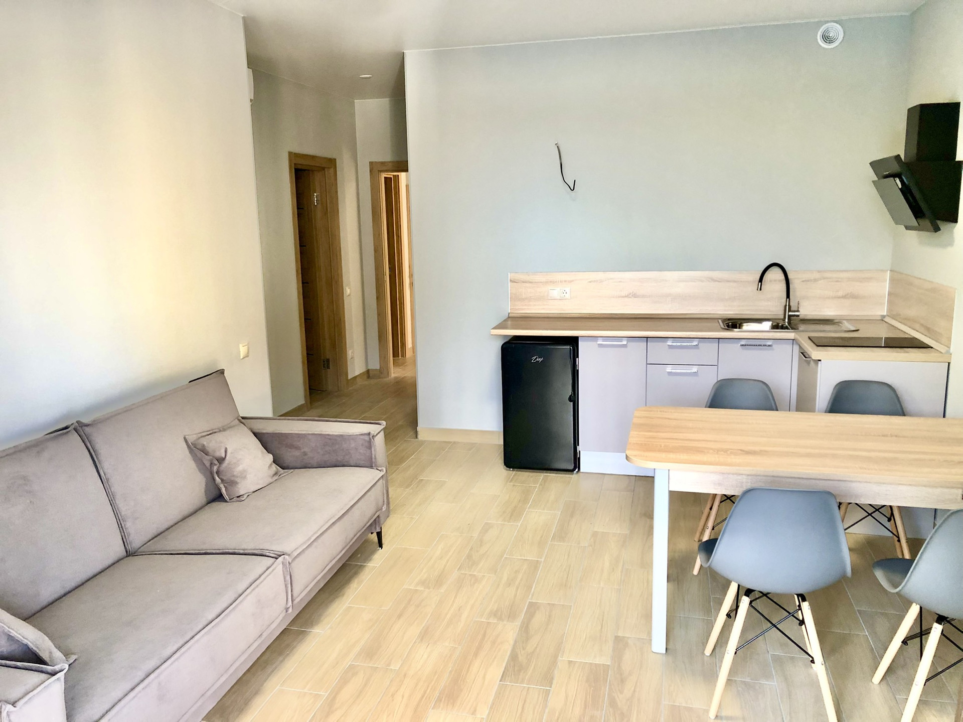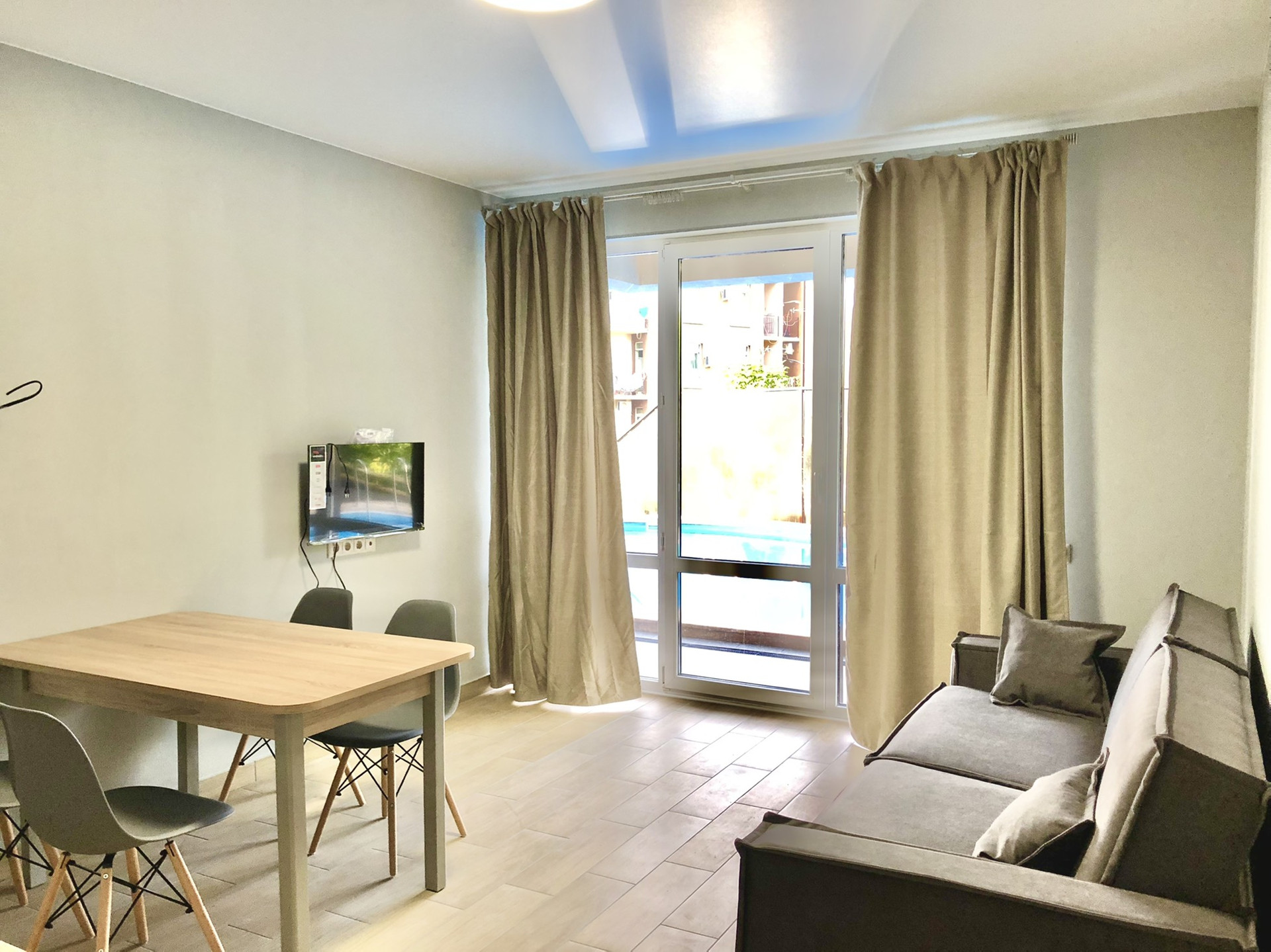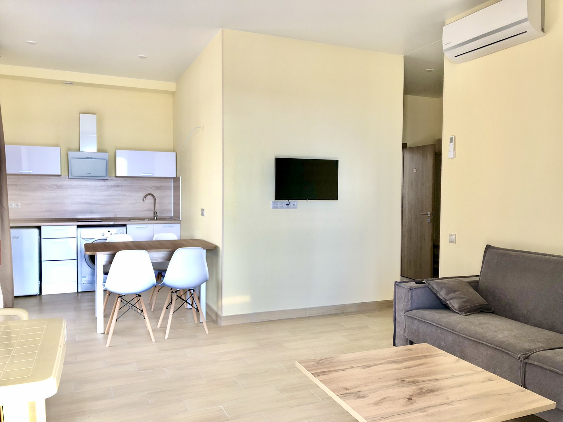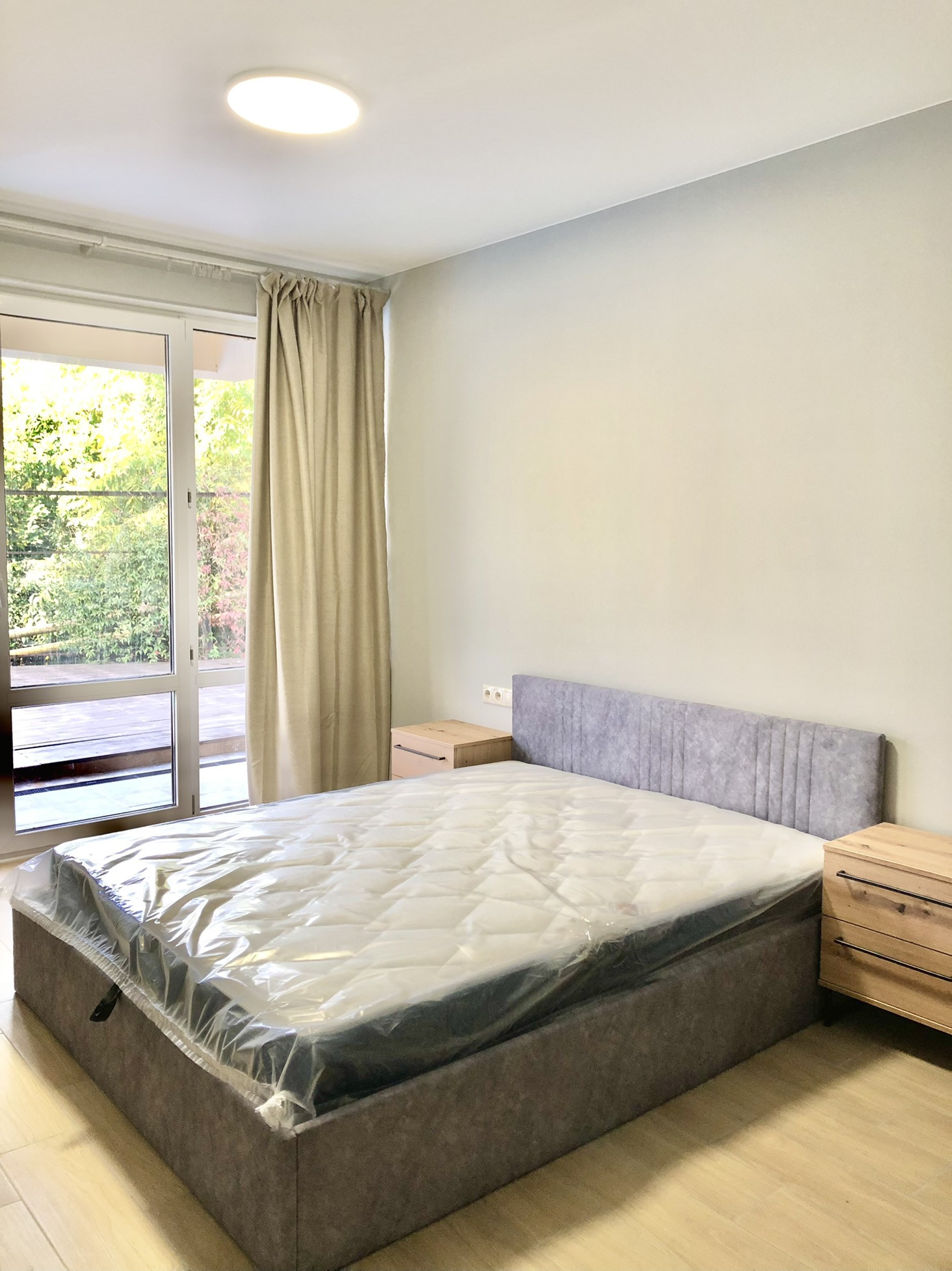 Выполнен новый ремонт, практически во всех комнатах установлена новая мебель, бытовая техника.