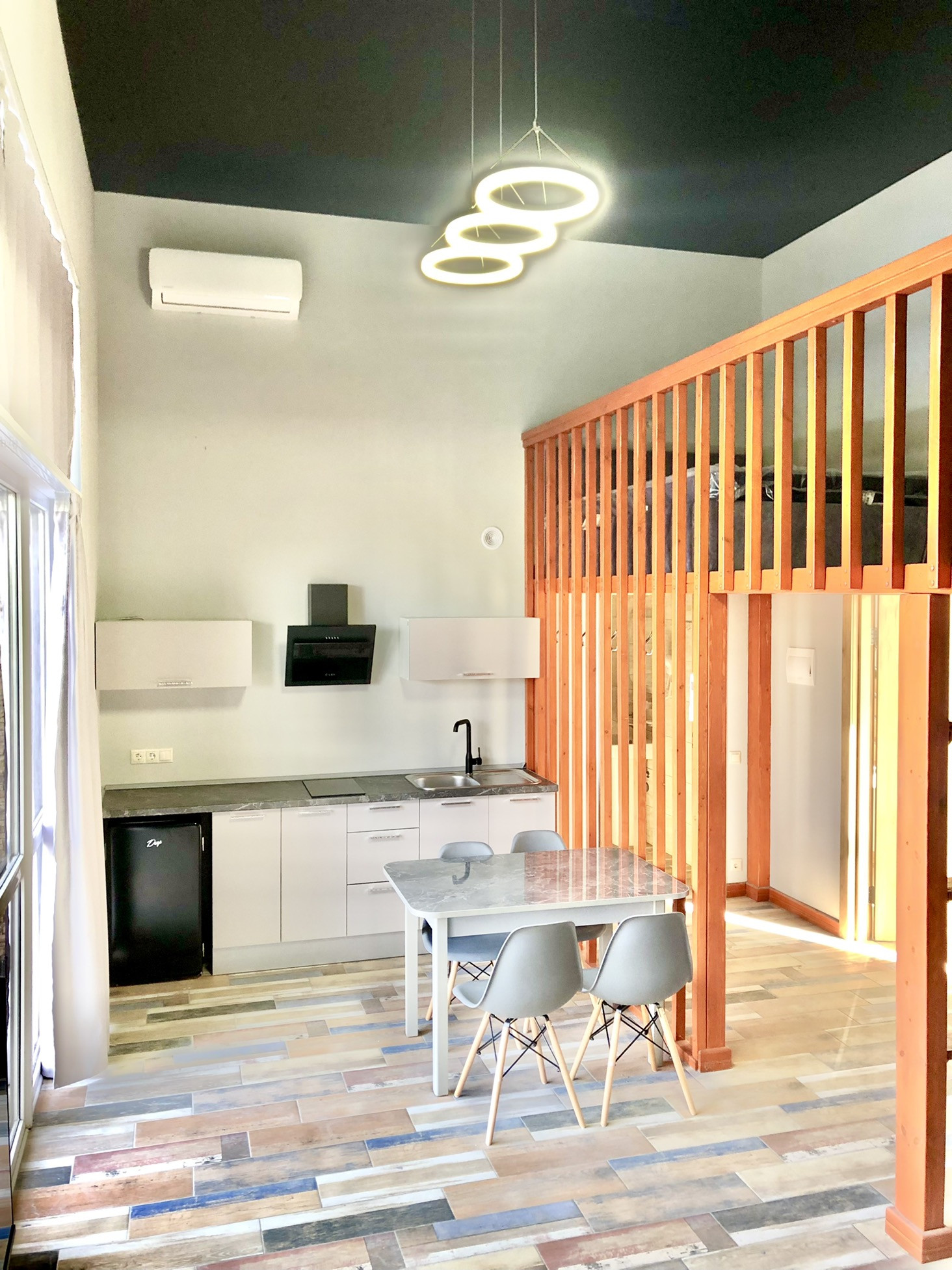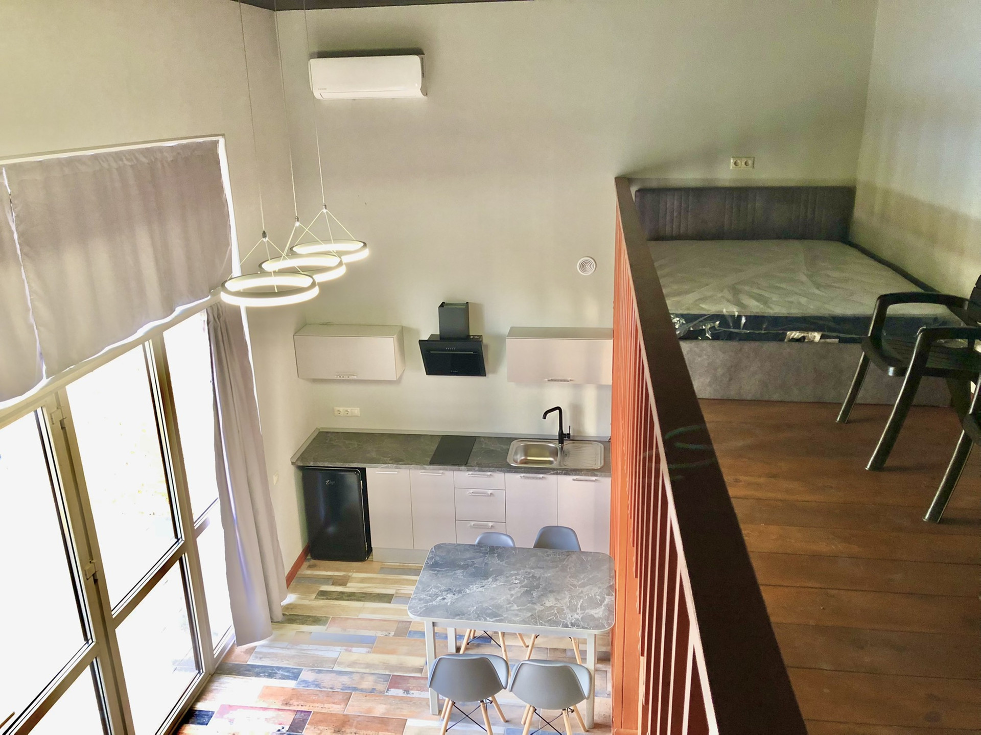 Дом распланирован на 8 комнат. В каждый комнате имеется своя кухня, а также душевая с санузлом и умывальником.
