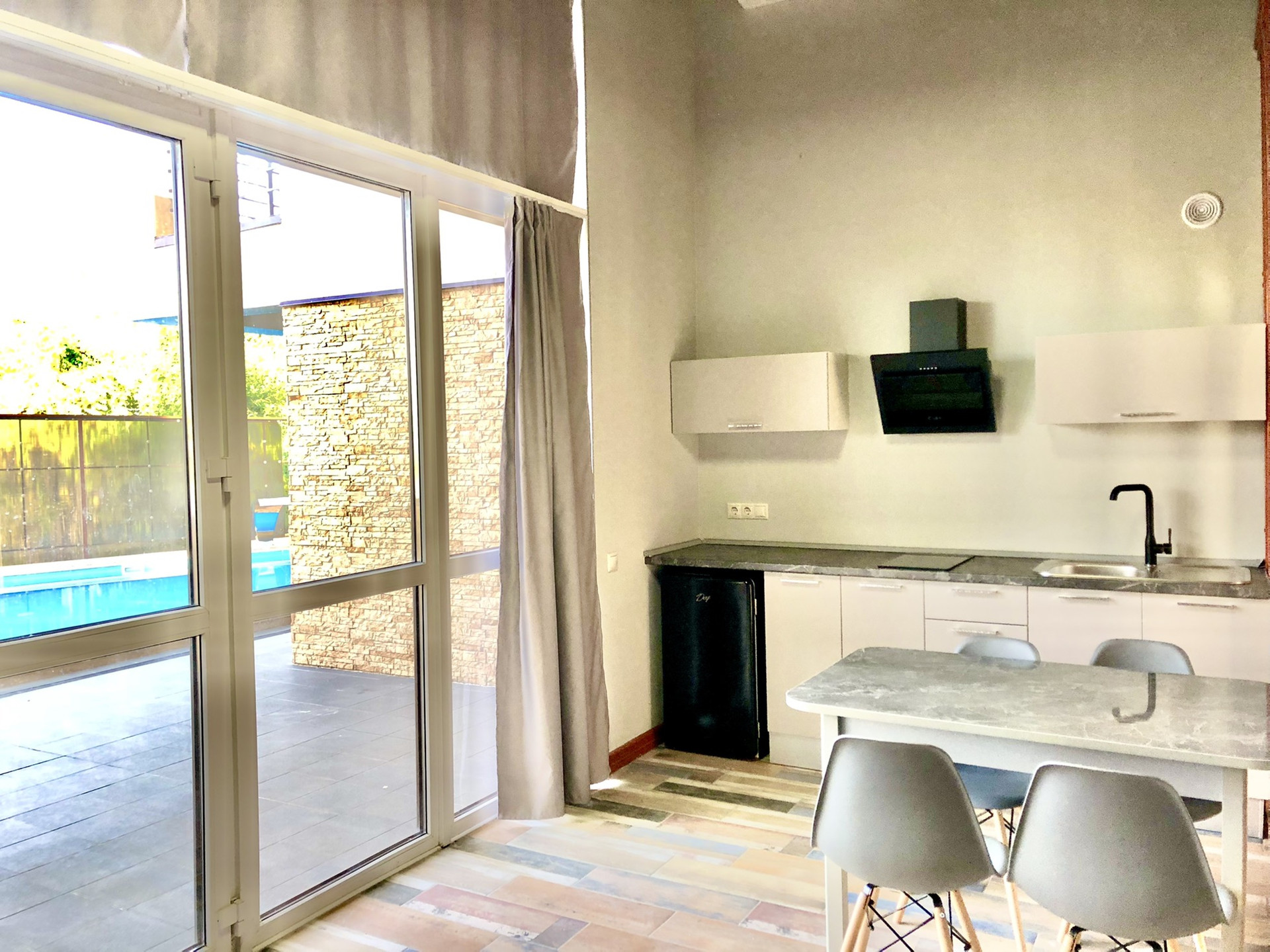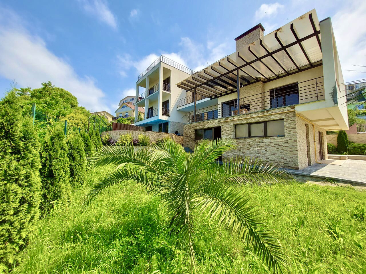 Из всех комнат есть выход на балкон с видом на море. По всему дому проложен теплый пол.