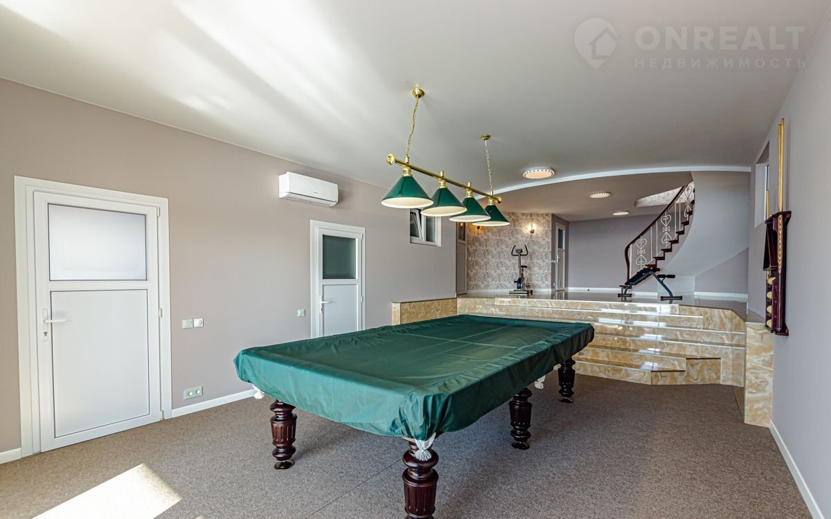 Цокольный этаж: бильярдная, санузел, серверная, несколько хозяйственных и технических помещений.