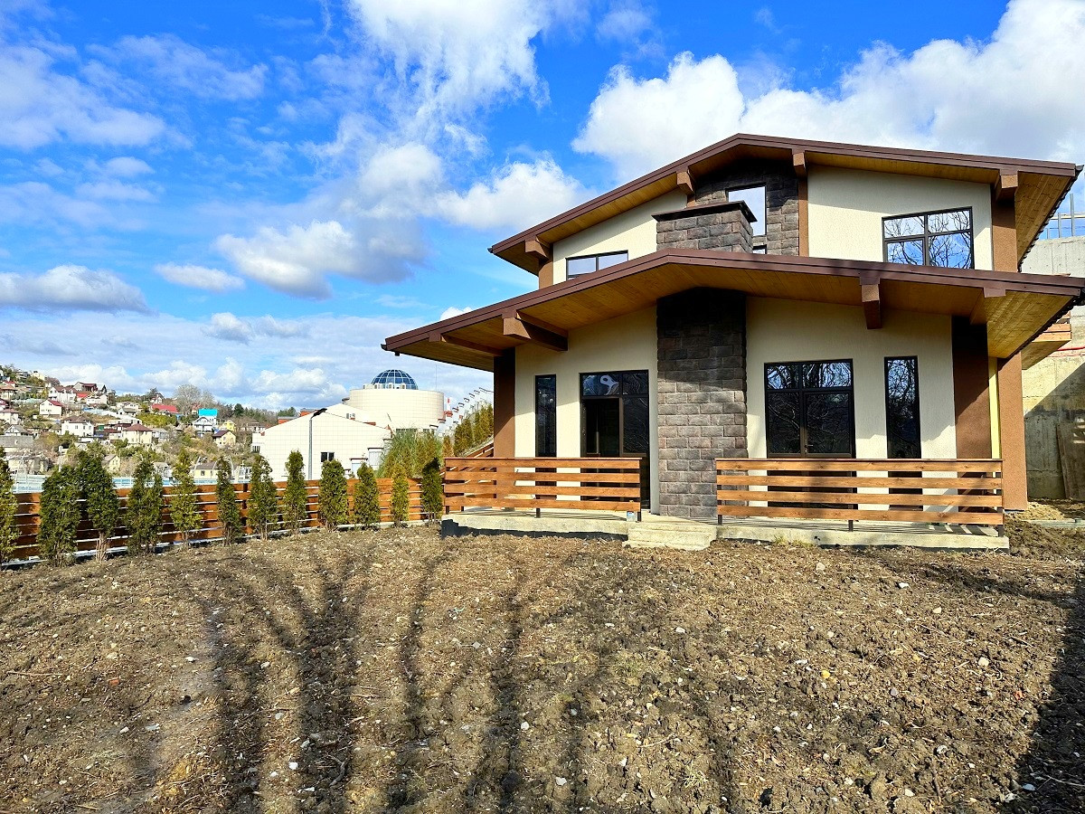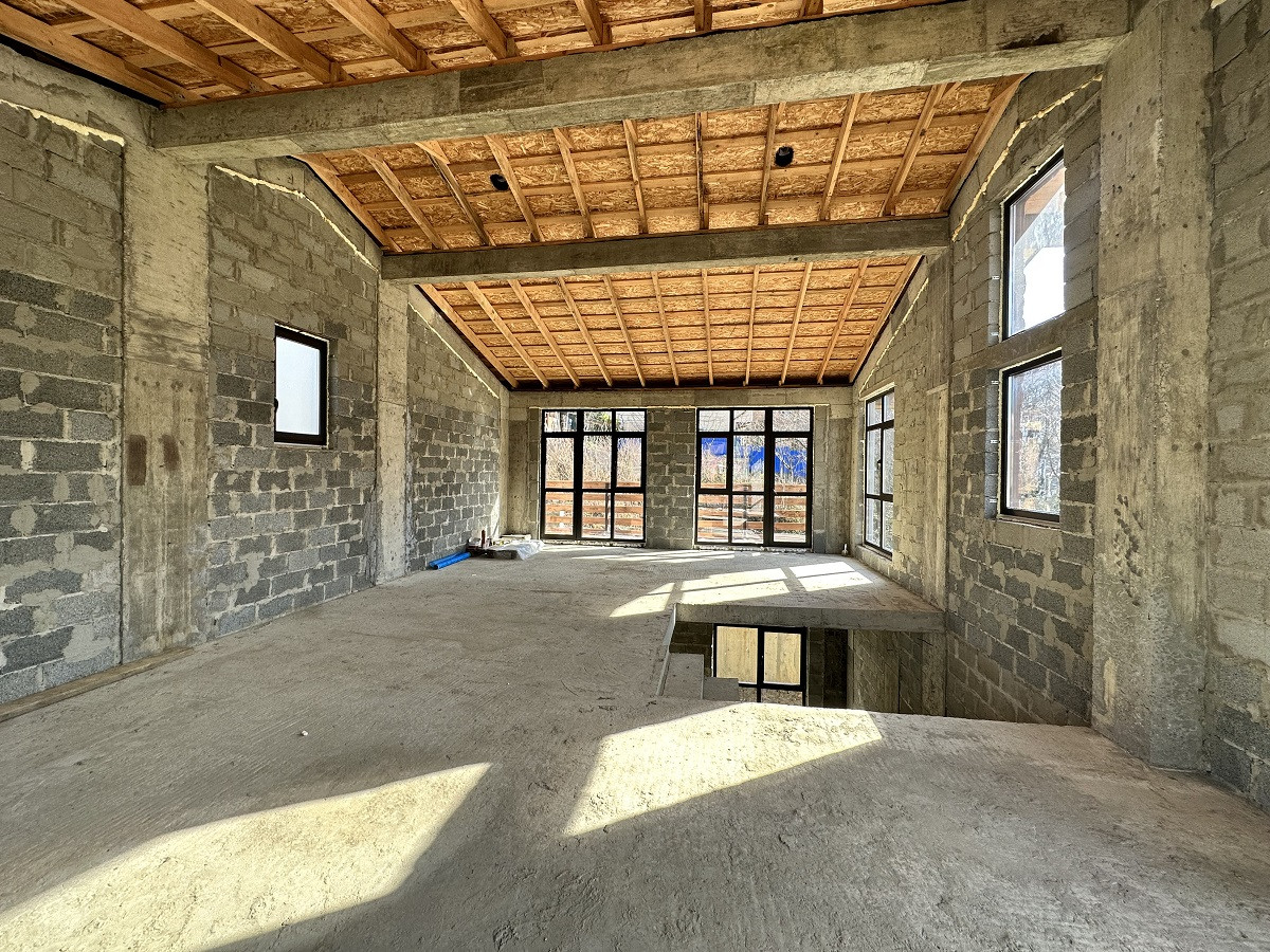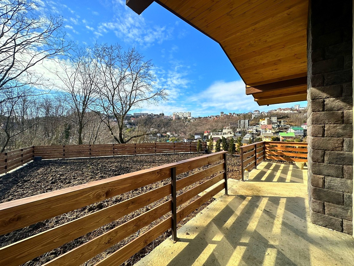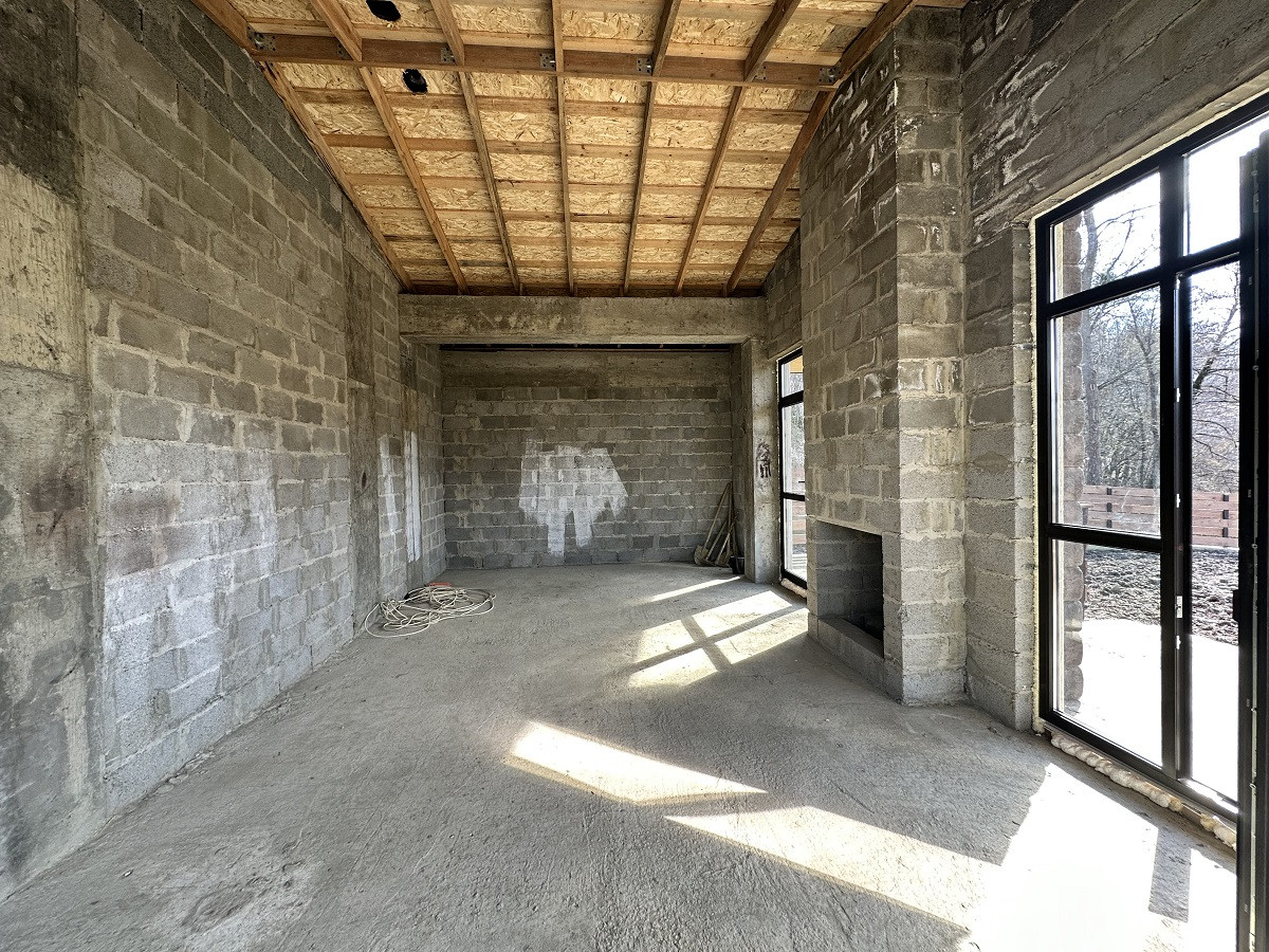 Площадь дома 170 кв.м.,  без внутренней отделки, что позволит выполнить дизайн интерьера на Ваш вкус. На первом этаже планируется просторная кухня-гостиная, ванная комната, спальня, каминный зал с выходом на террасу. Второй этаж - 3 спальни, гардеробная, санузел и балконы. Благодаря рациональному  расположению окон все помещения светлые и просторные. С балкона открывается красивый вид на горные вершины и жилой массив.