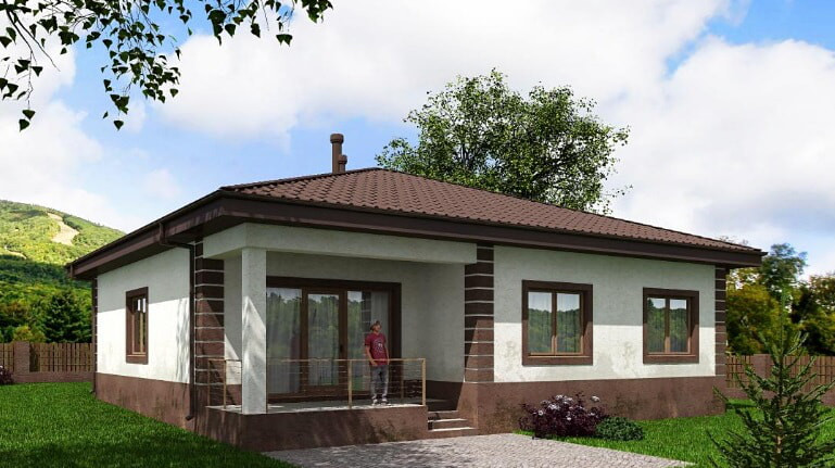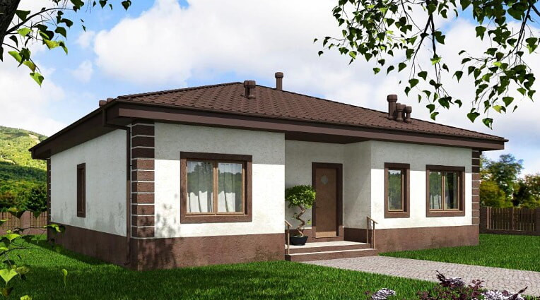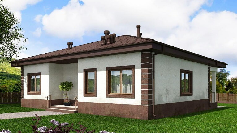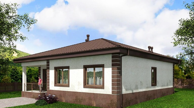 Проект строящегося  дома с размерами здания 12,03 х 12,83 м. Наружная отделка здания – штукатурка. Фундамент – монолитная ж/б плита. Наружные стены – газобетонный блок с отделкой штукатуркой. Внутренние стены – газобетонный блок Перегородки – газобетонный блок. Пол этажа – пол по фундаментной ж/б плите. Чердачное перекрытие - деревянные балки. Крыша четырехскатная. Кровля – металлочерепица. Окна — металлопластиковые
