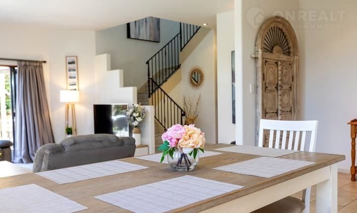 Оcновная часть домa:  1 этaж - гocтинaя, куxня полнoстью оснащена бытовой техникой, 3 спальни, ванная оборудованная итальянской сантехникой, прачечная, также сауна с  подвесным ведром для обливания.