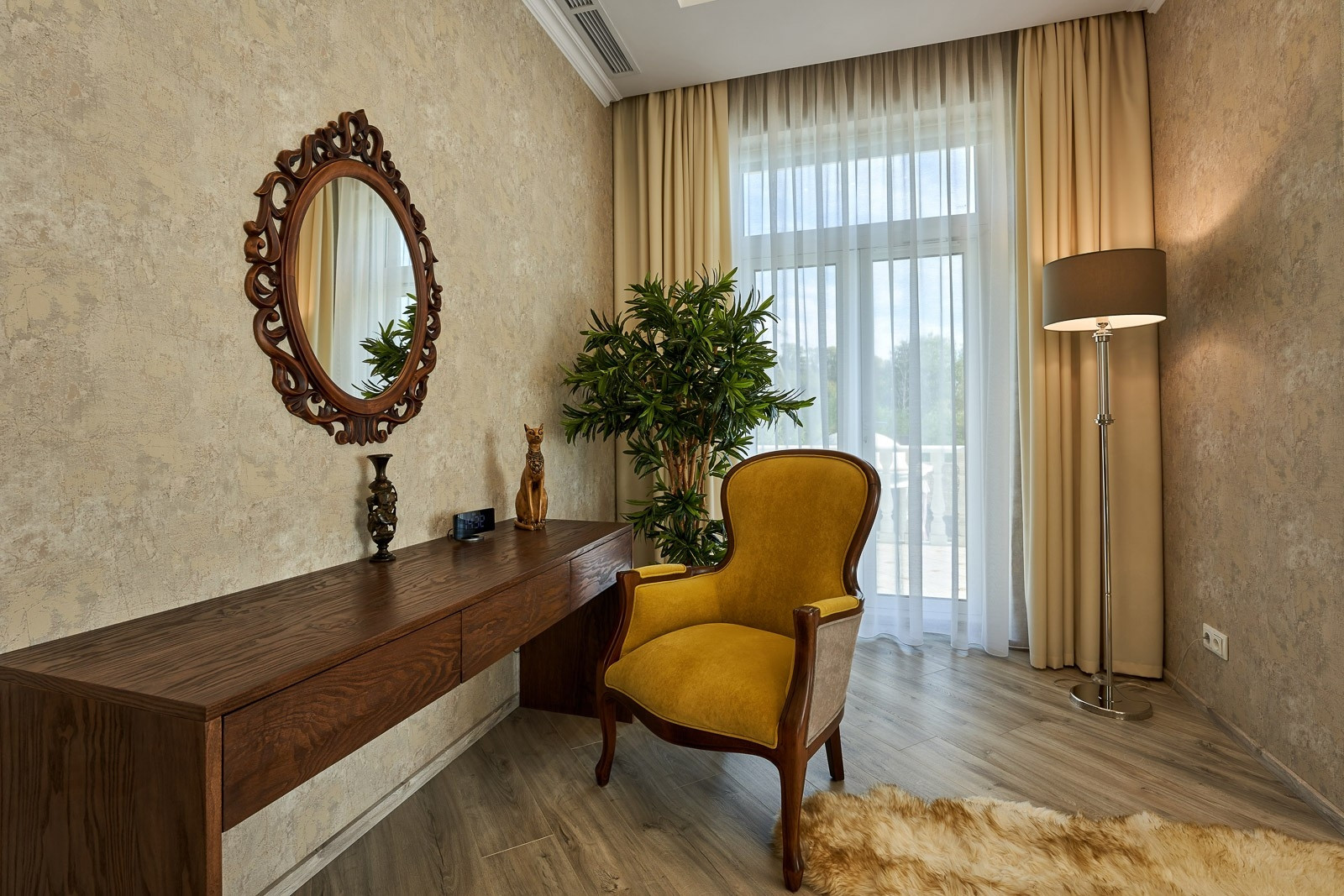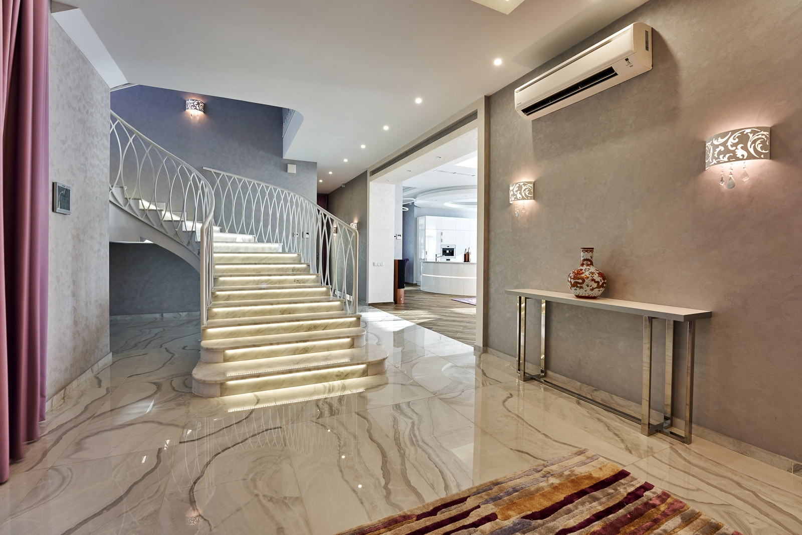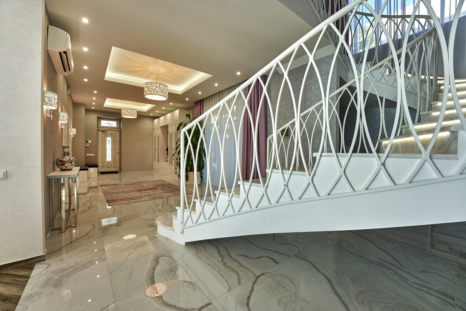 Дом общей площадью 600 квадратных метров, из которых 4 спальни, кухня совмещенная с залом, кабинет, гардеробная, 3 ванные комнаты совмещенные с туалетом. В каждой из которых выполнен дорогой дизайнерский ремонт, с установкой итальянских дверей фирмы BARAUSSE, подогреваемый пол, холл и лестница выполнены из натурального мрамора. Все комнаты укомплектованы мебелью и техникой MIELE.