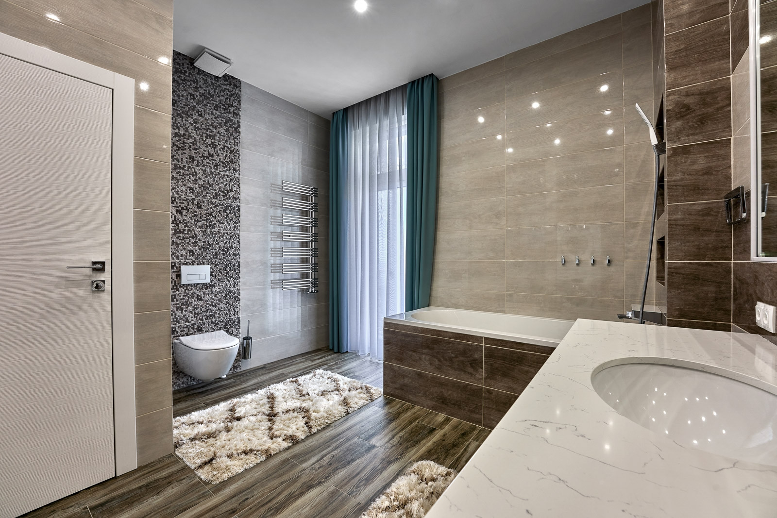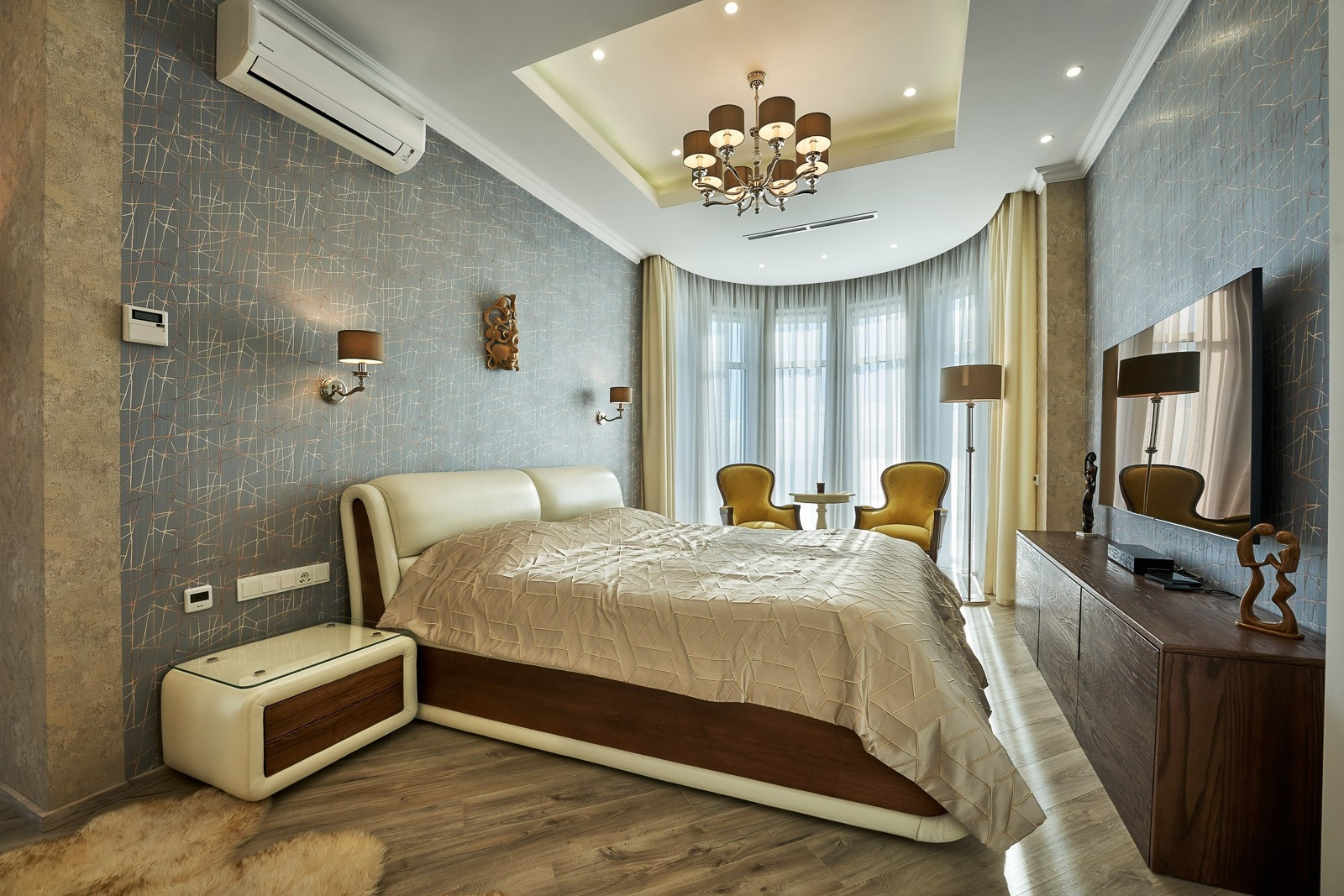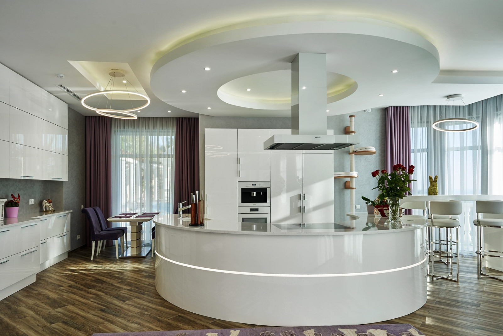 Дом общей площадью 600 квадратных метров, из которых 4 спальни, кухня совмещенная с залом, кабинет, гардеробная, 3 ванные комнаты совмещенные с туалетом. В каждой из которых выполнен дорогой дизайнерский ремонт, с установкой итальянских дверей фирмы BARAUSSE, подогреваемый пол, холл и лестница выполнены из натурального мрамора. Все комнаты укомплектованы мебелью и техникой MIELE.