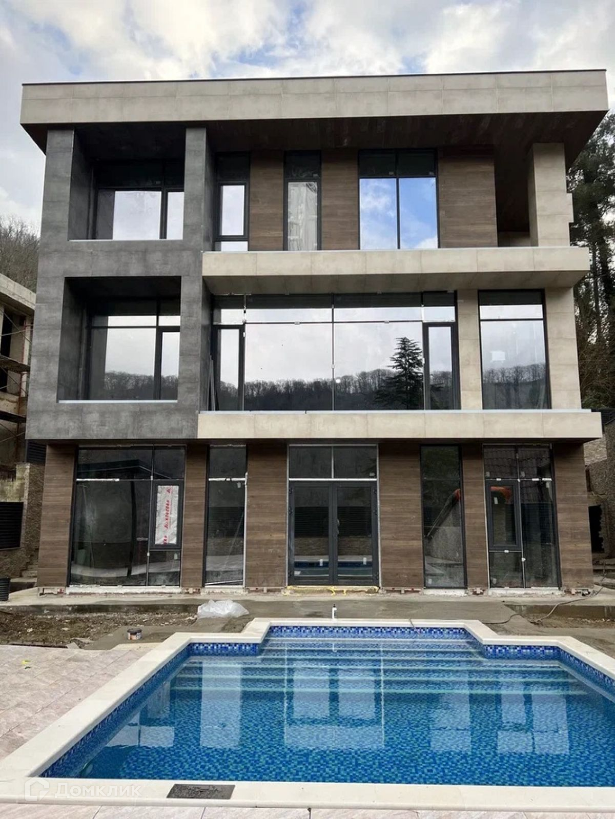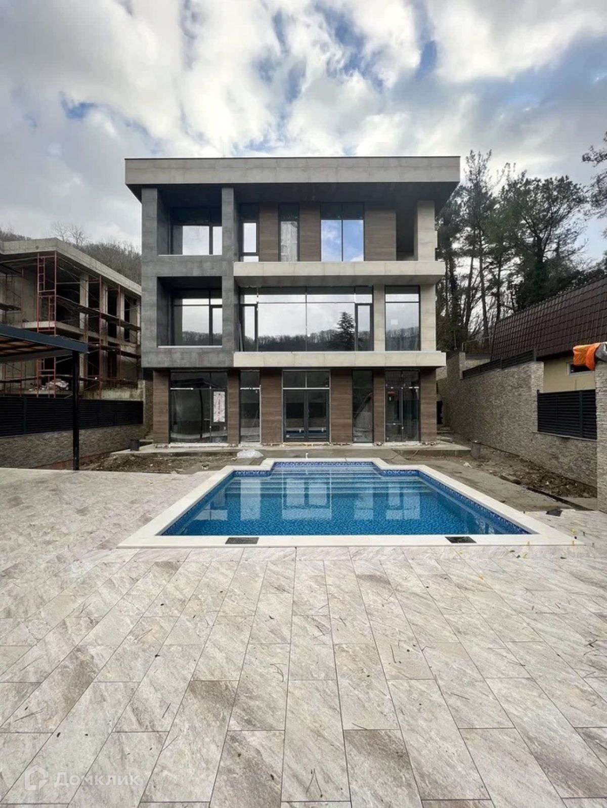 Продаю коттедж в стиле хайтек в красивом месте Сочи. Дом монолитно-каркасный с блочным заполнением. Фасад дома облицован керамогранитом, окна из алюминиевого профиля.