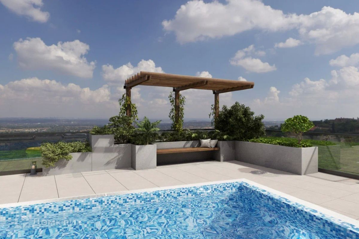 Территория с ландшафтным дизайном, на территории переливной бассейн с подогревом и  современной системой очистки воды, зона барбекю, паркинг на 3 а/машины. Участок ровный, в собственности.
