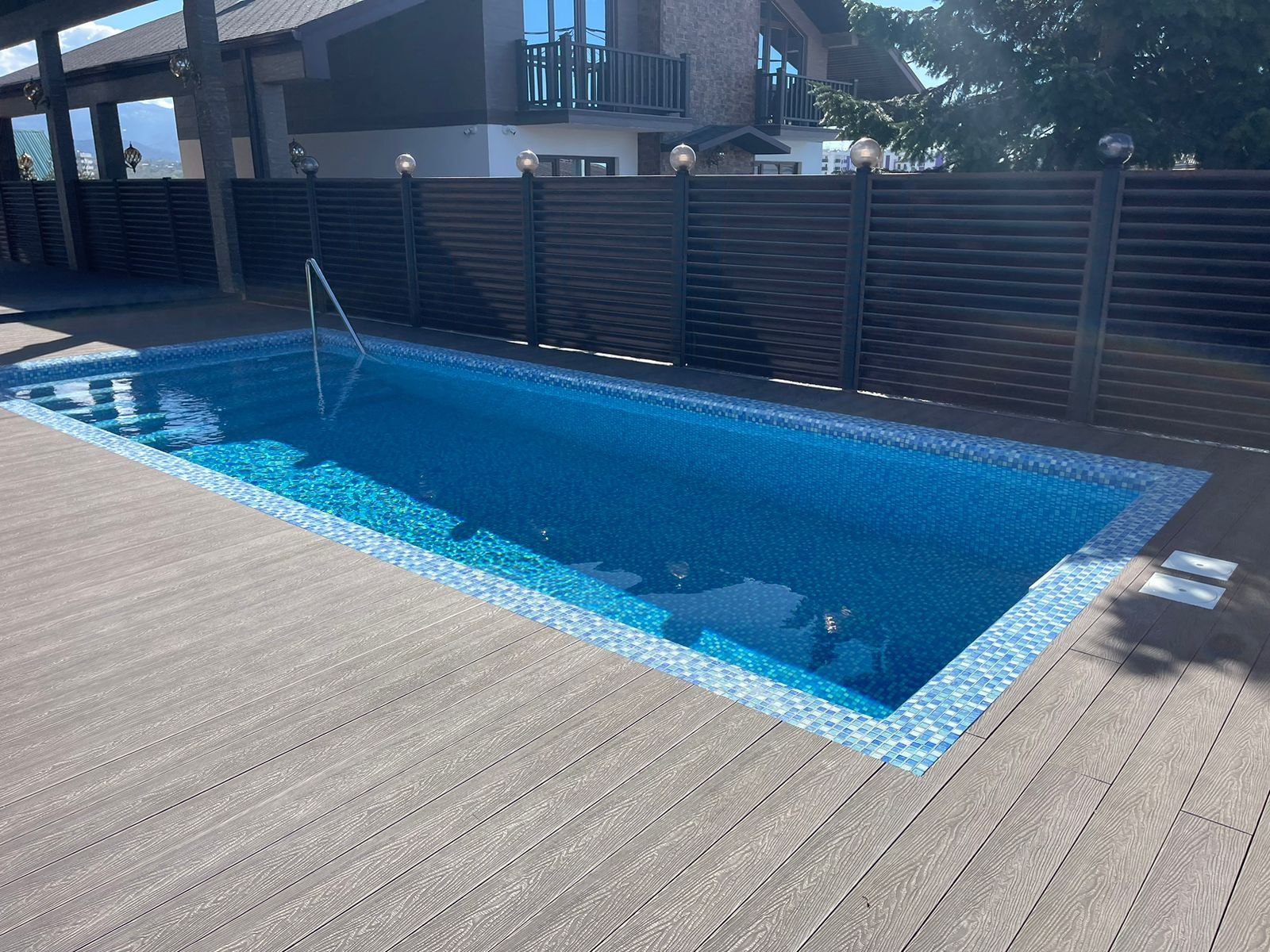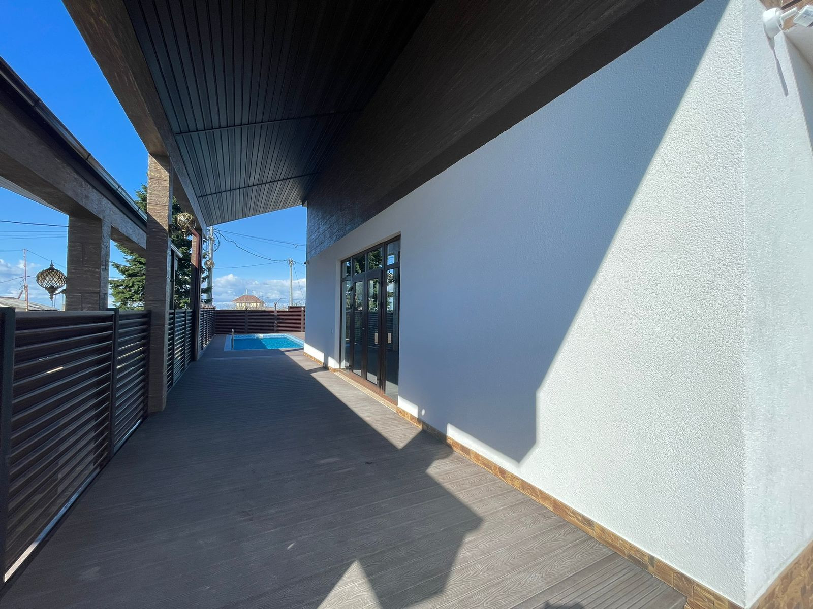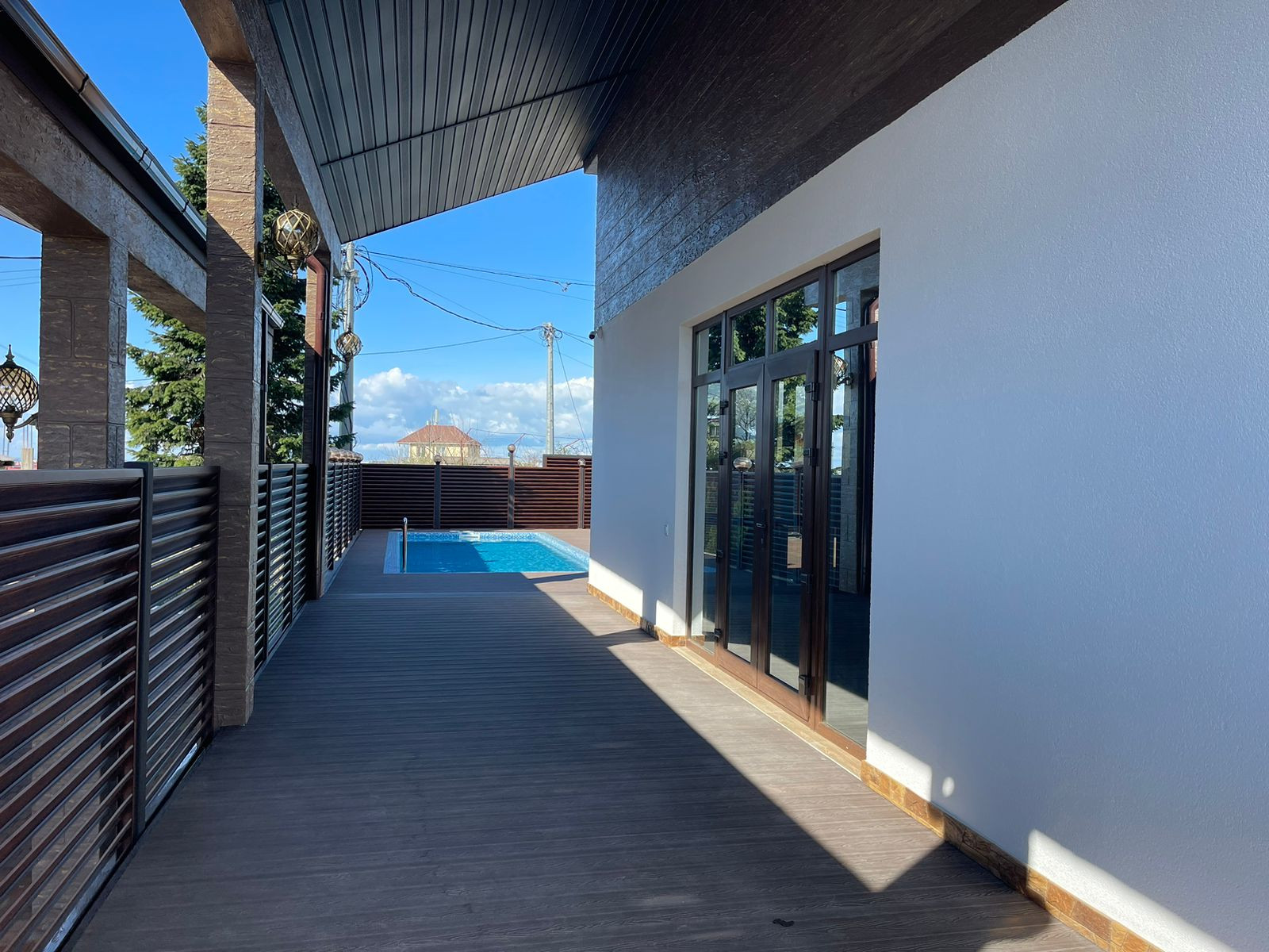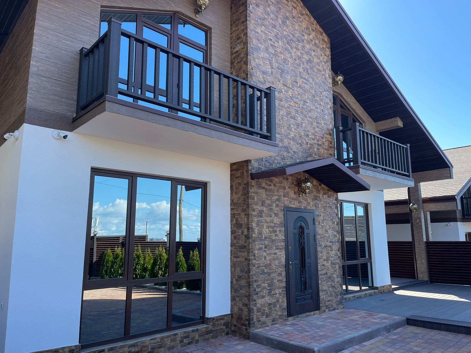 Дом построен в стиле шале! Имеется бассейн, отличный вид на горы и море!