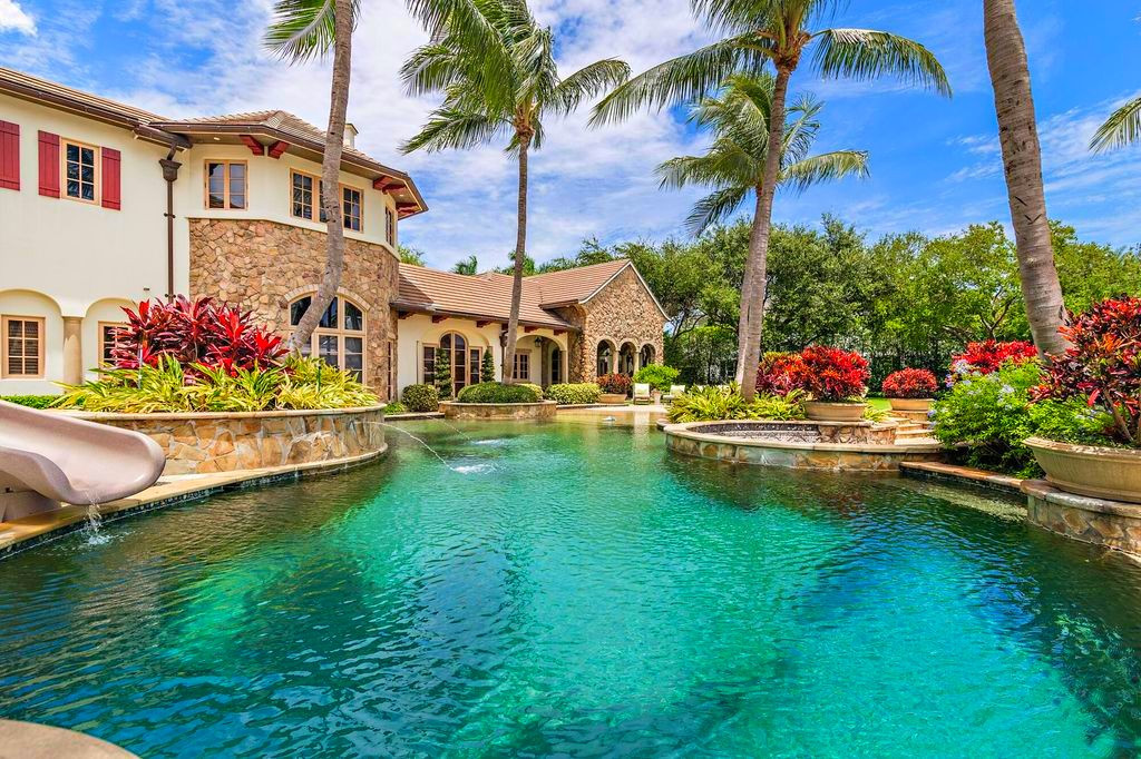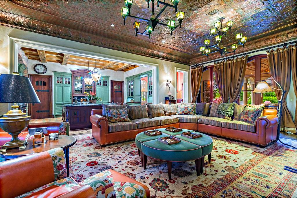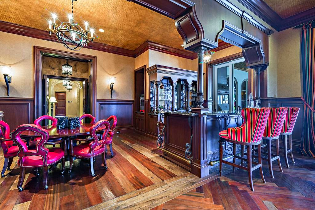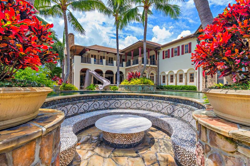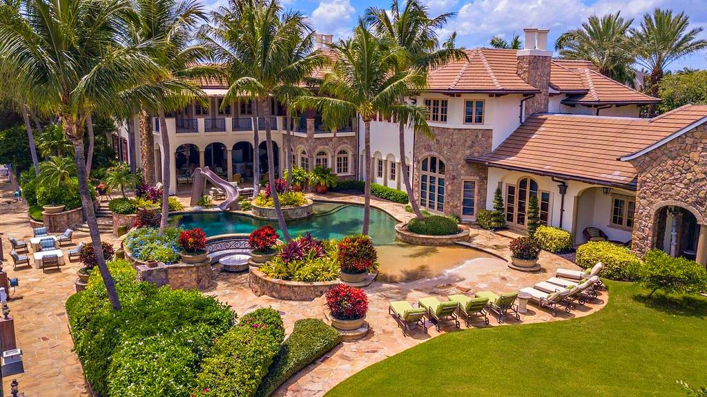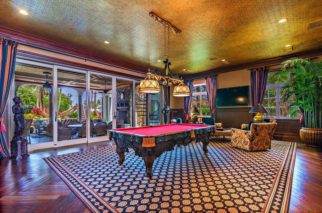 Сам дом выполнен из премиальных материалов в средиземноморском стиле и может похвастаться своим кинотеатром, комнатой отдыха, тренажёрным залом и собственным причалом.