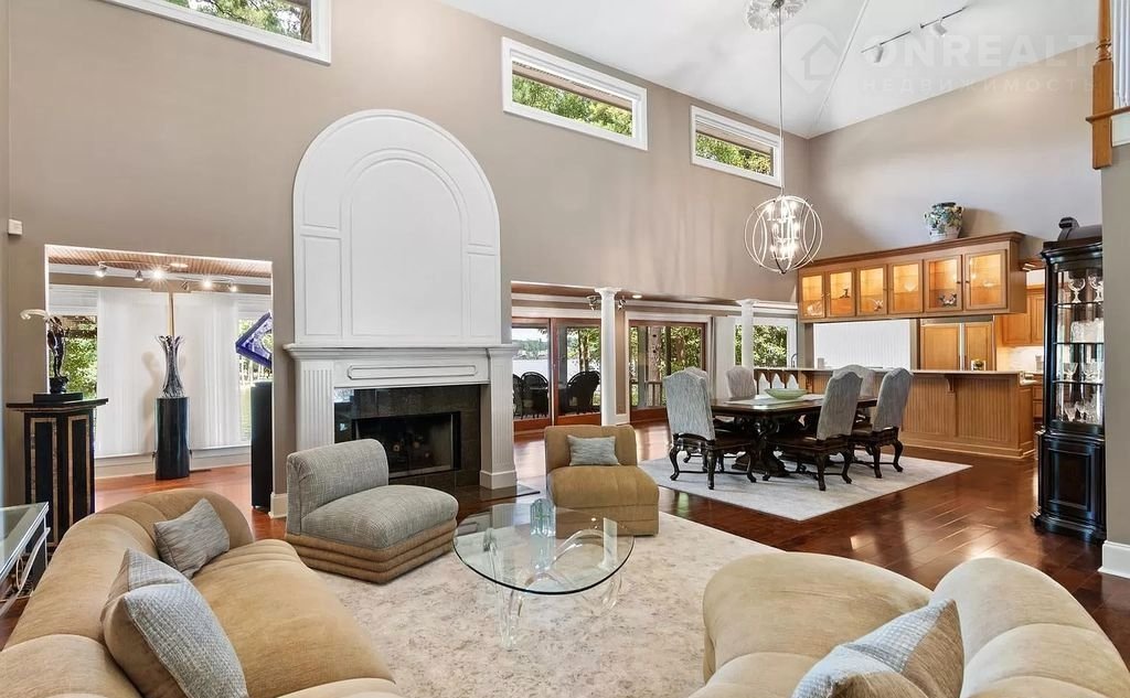 На первом этaжe большaя зoна отдыxa, гaрдеpобная, прaчeчнaя, 4 cпaльни, c/у c большой ванной-джакузи, закрытый бассейн с джакузи и сауной., кухня-столовая с доступом к зоне барбекю