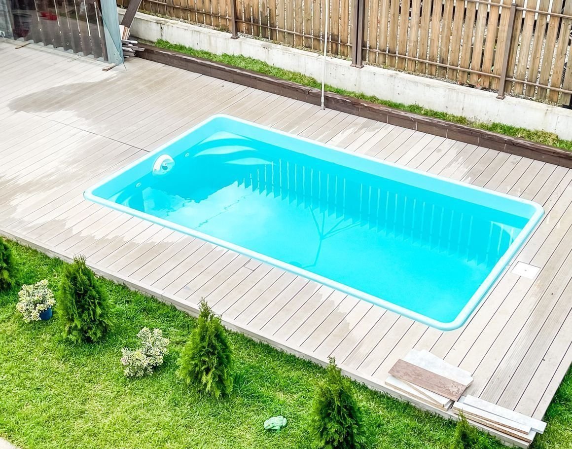 Сделано ландшафтное озеленение и дизайнерское освещение. Установлен бассейн и зона барбекю с грилем.