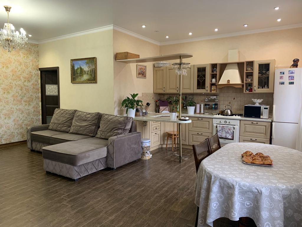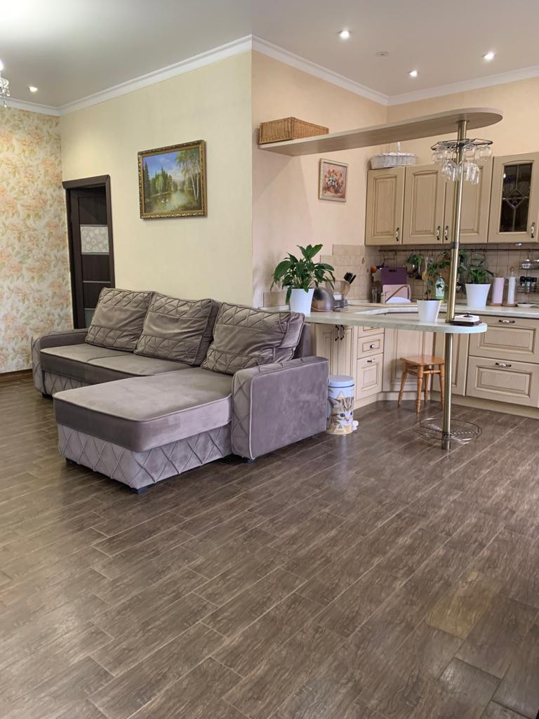 - функциональная планировка: просторная гостиная, совмещенная с кухней 45 кв.м., жилая комната 15 кв.м., сан.узел совмещенный с ванной комнатой 5 кв.м.,