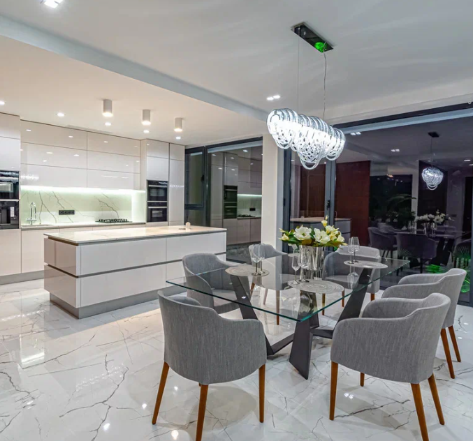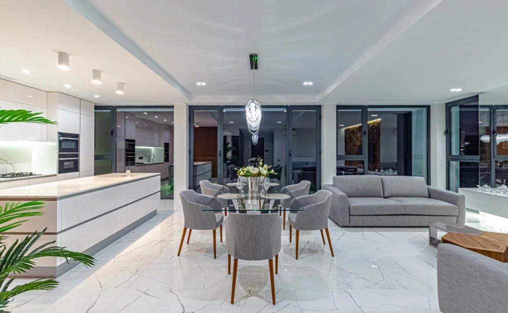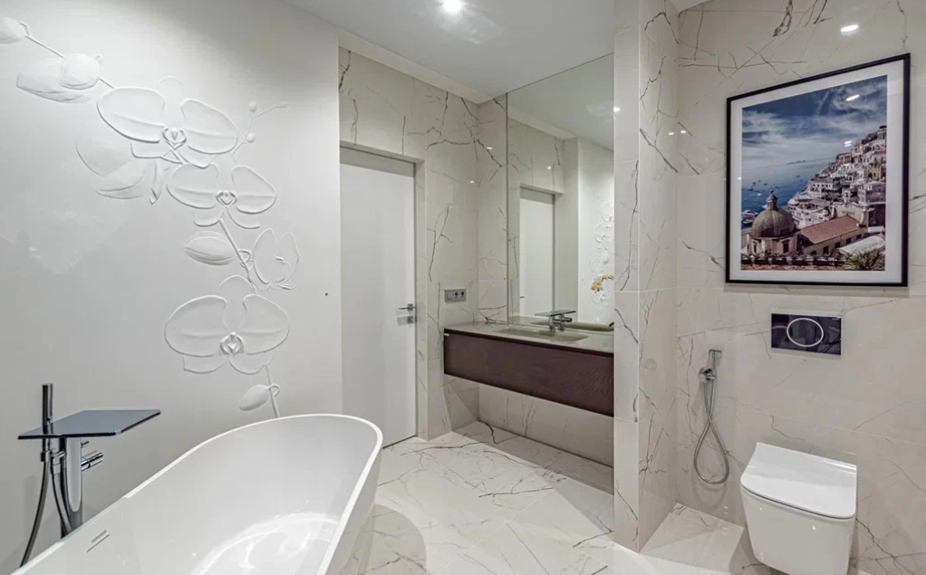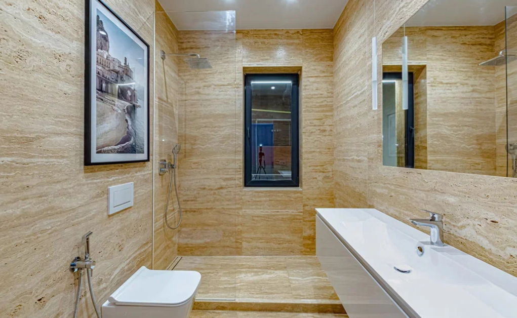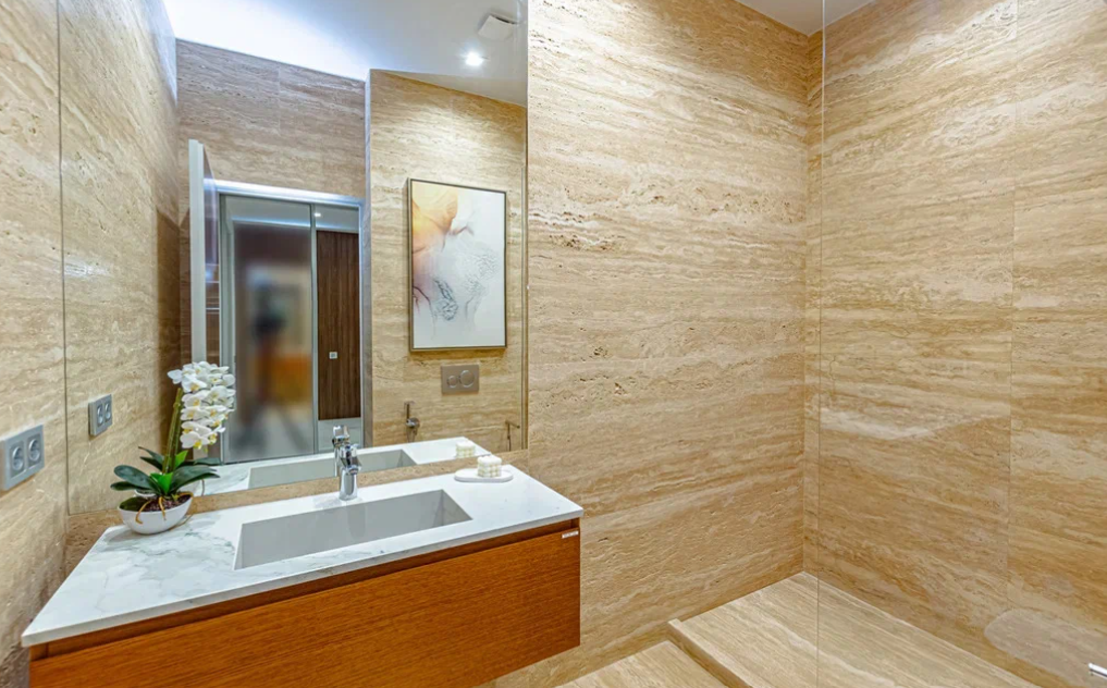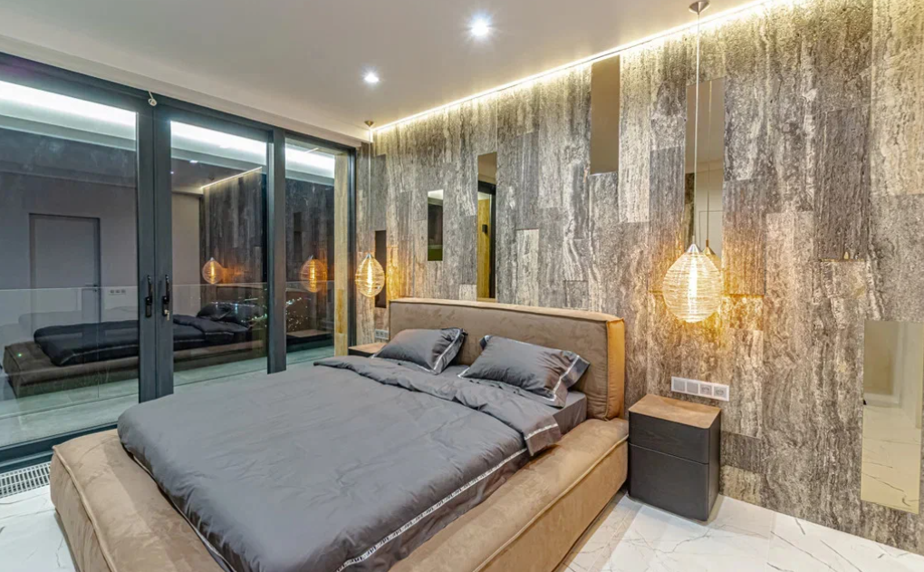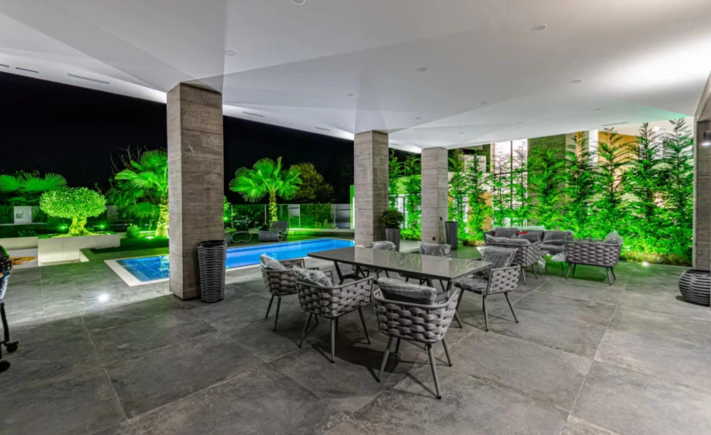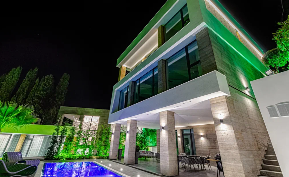 В наружной и внутренней отделках дома использован травертин - натуральный камень. Двухэтажный дом полностью укомплектован дорогой техникой и мебелью мировых премиальных брендов. На придомовой территории есть бассейн, зона барбекю, зона отдыха, сауна, гараж на два парковочных места и сад с капельным поливом. Дом подключен к центральным городским коммуникациям. Есть инженерные системы, вентиляция, газовое отопление, два индивидуальных отопительных котла и система видеонаблюдения с охранной сигнализацией.