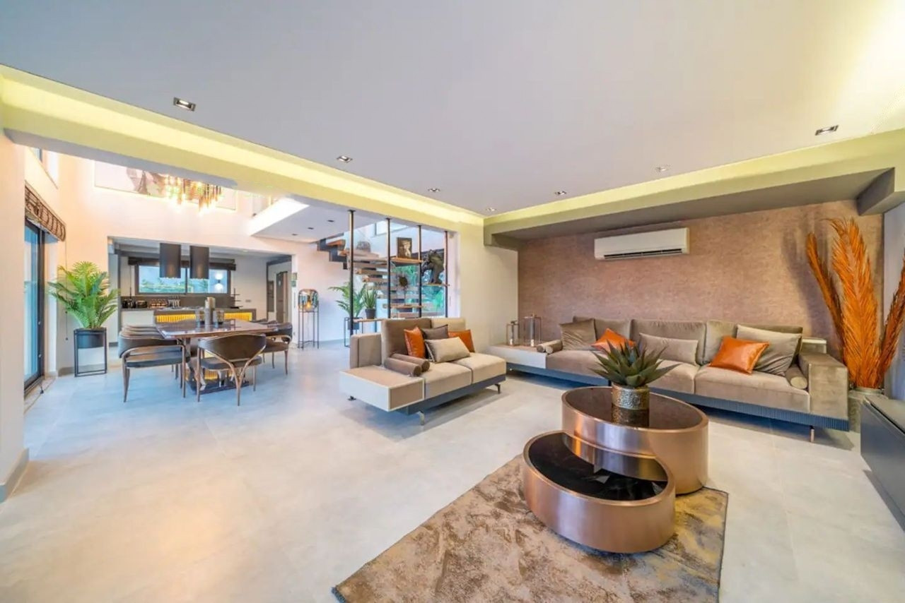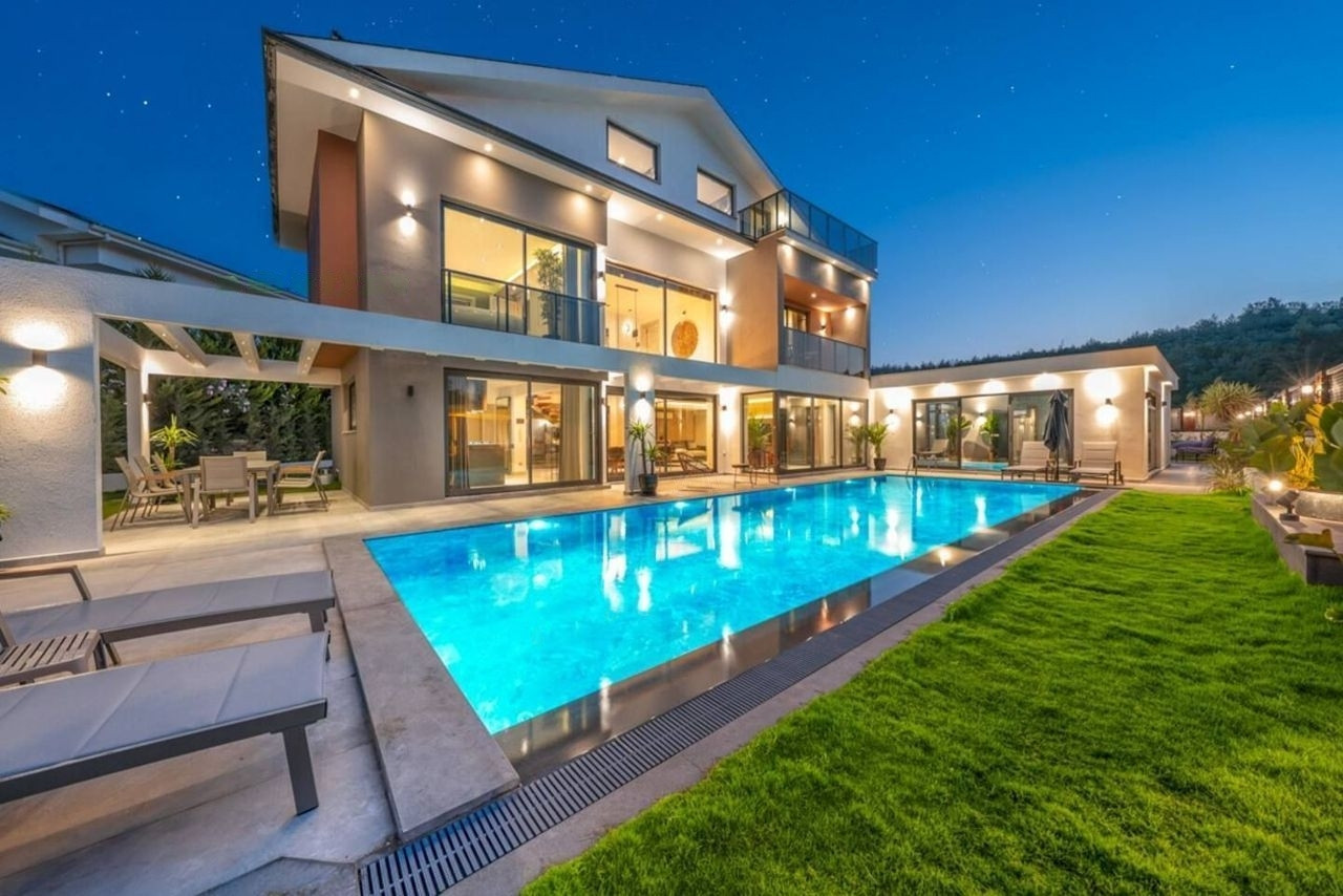 Объект недвижимости находится на земельном участке площадью 6 соток. Внутри дома есть все необходимое для комфортной жизни - 5 просторных комнат с большой кухней-гостиной. В доме выполнен дизайнерский ремонт. Перед домом шикарный бассейн.