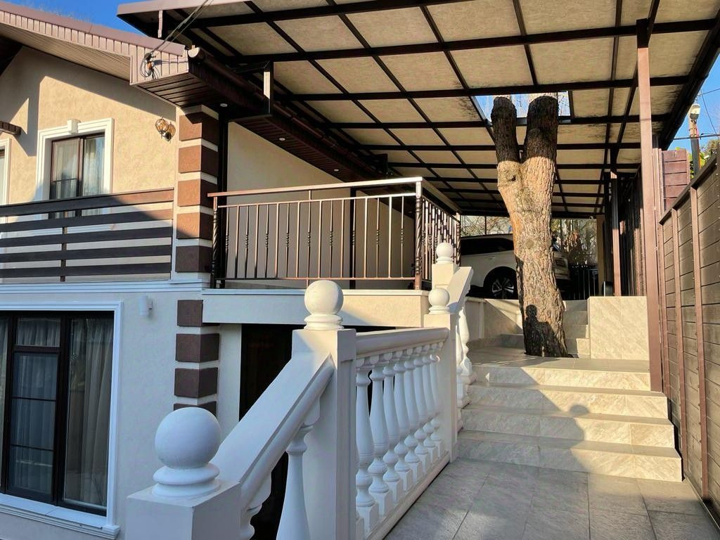 На земельном участке площадью 5 соток находится 2-х этажный дом 150 кв.м. с парковкой на 2 машины, и летняя кухня с зоной барбекю, Территория дома огорожена, приватна, скрыта от посторонних глаз и находится под видеонаблюдением.