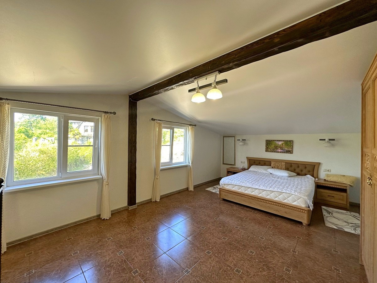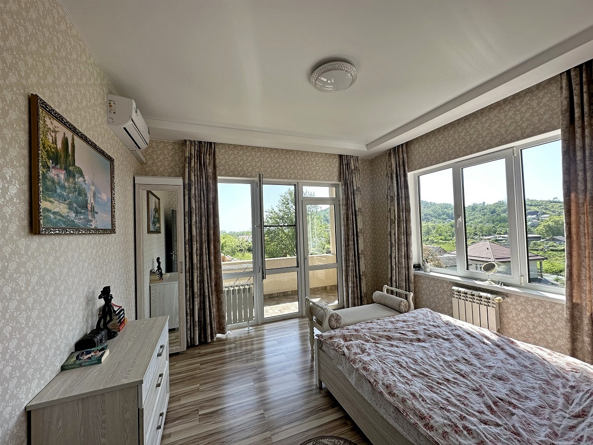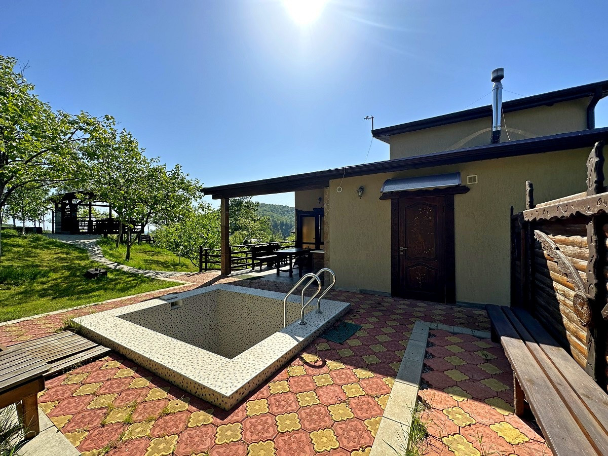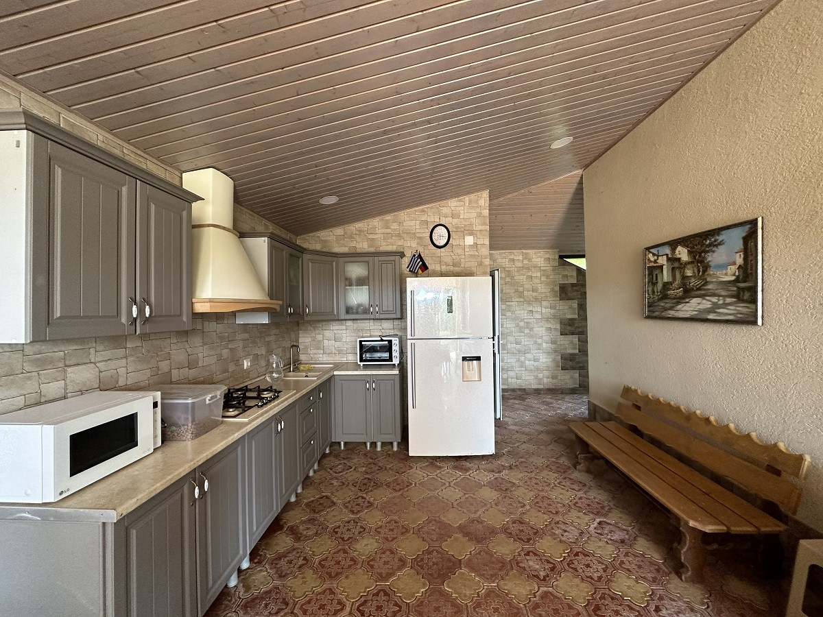 На участке есть собственный бассейн, банный комплекс, летняя кухня и беседка для отдыха, где вы сможете устраивать дружеские встречи или же SPA-вечера, наслаждаясь южным теплом и прекрасными видами на море и горы!