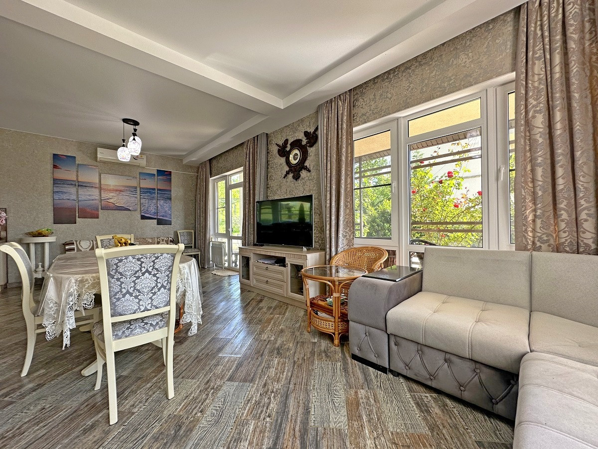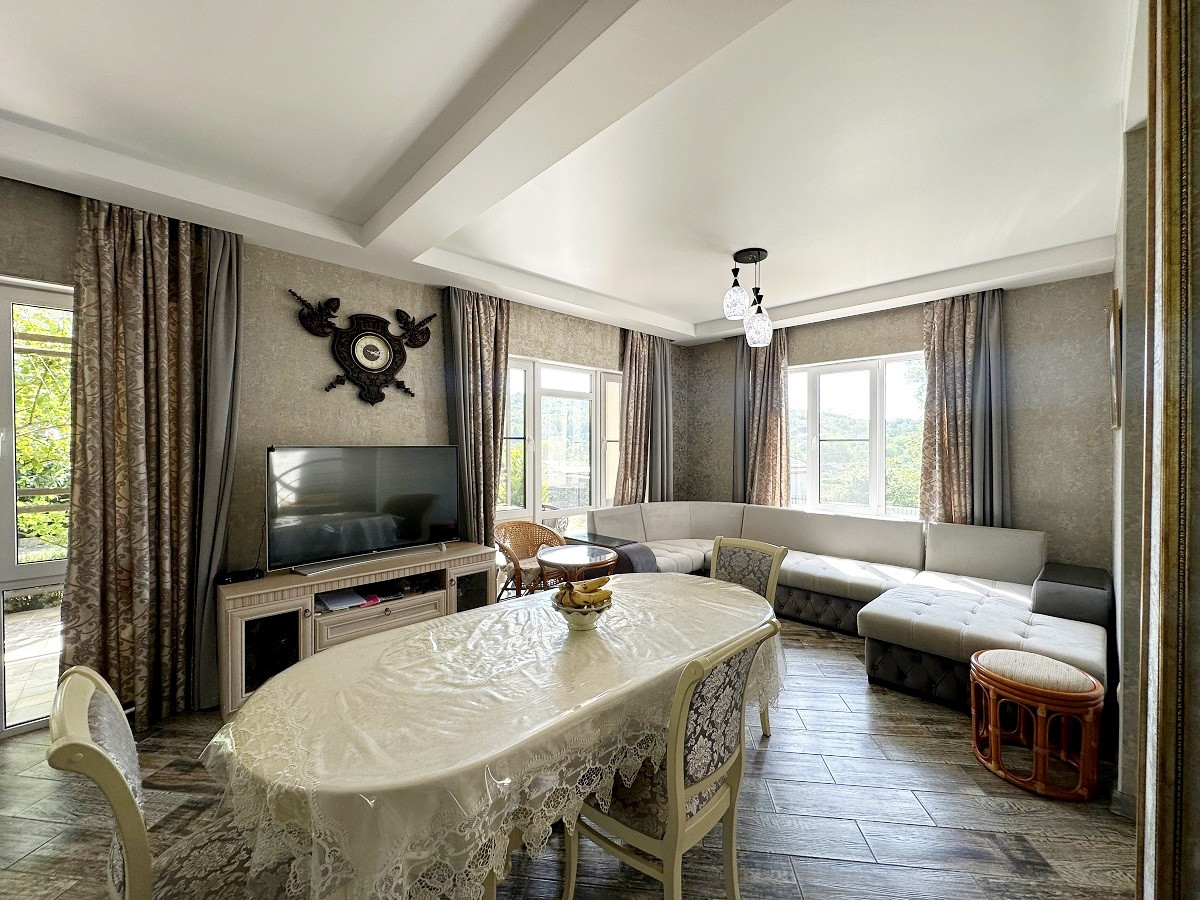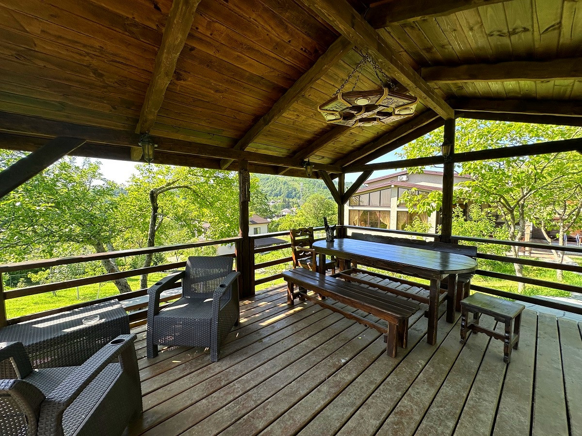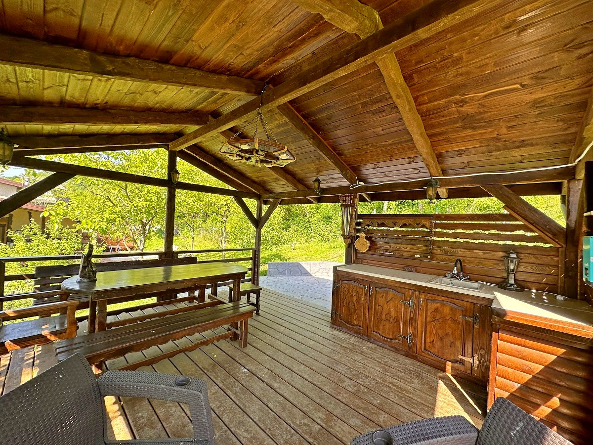 На участке есть собственный бассейн, банный комплекс, летняя кухня и беседка для отдыха, где вы сможете устраивать дружеские встречи или же SPA-вечера, наслаждаясь южным теплом и прекрасными видами на море и горы!